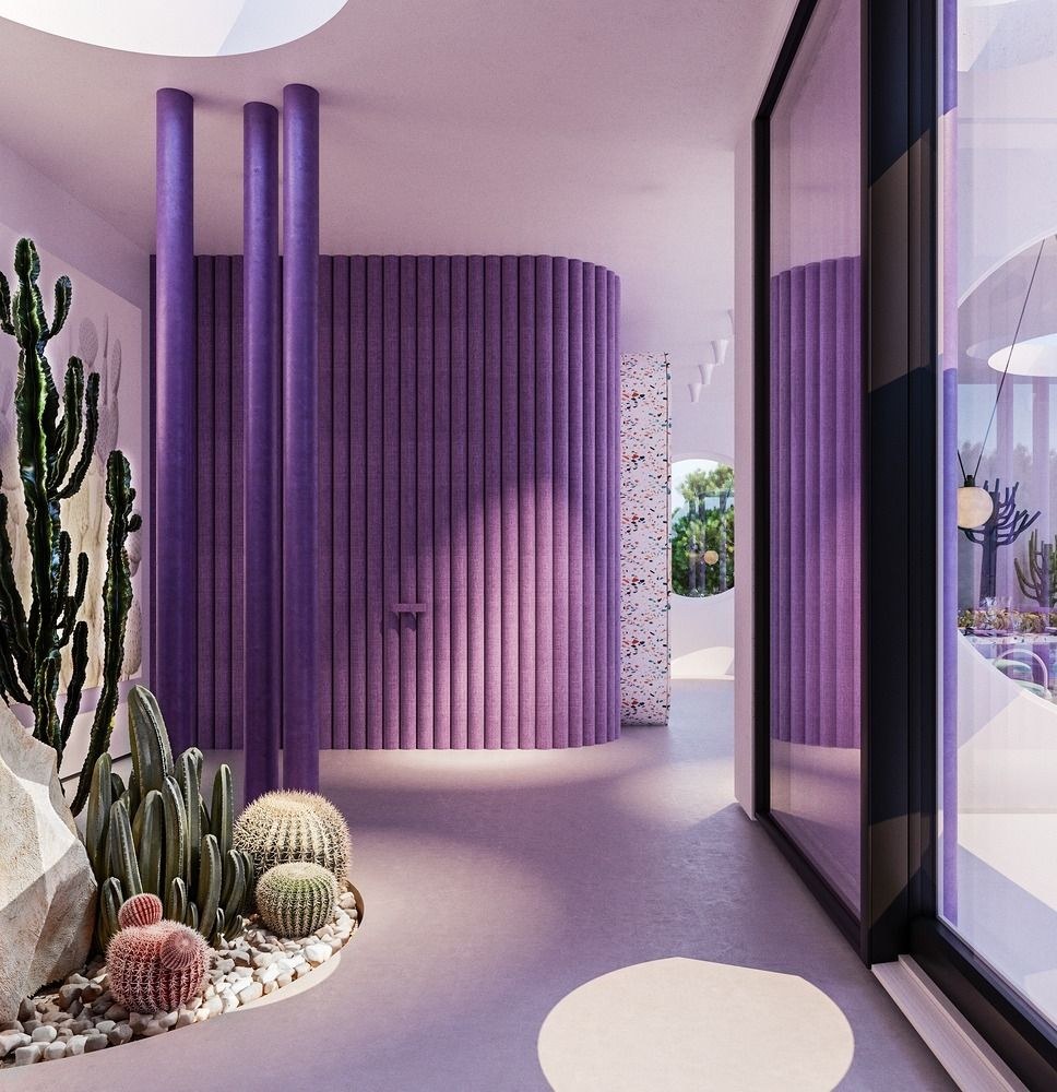 Современный интерьер с фиолетовый