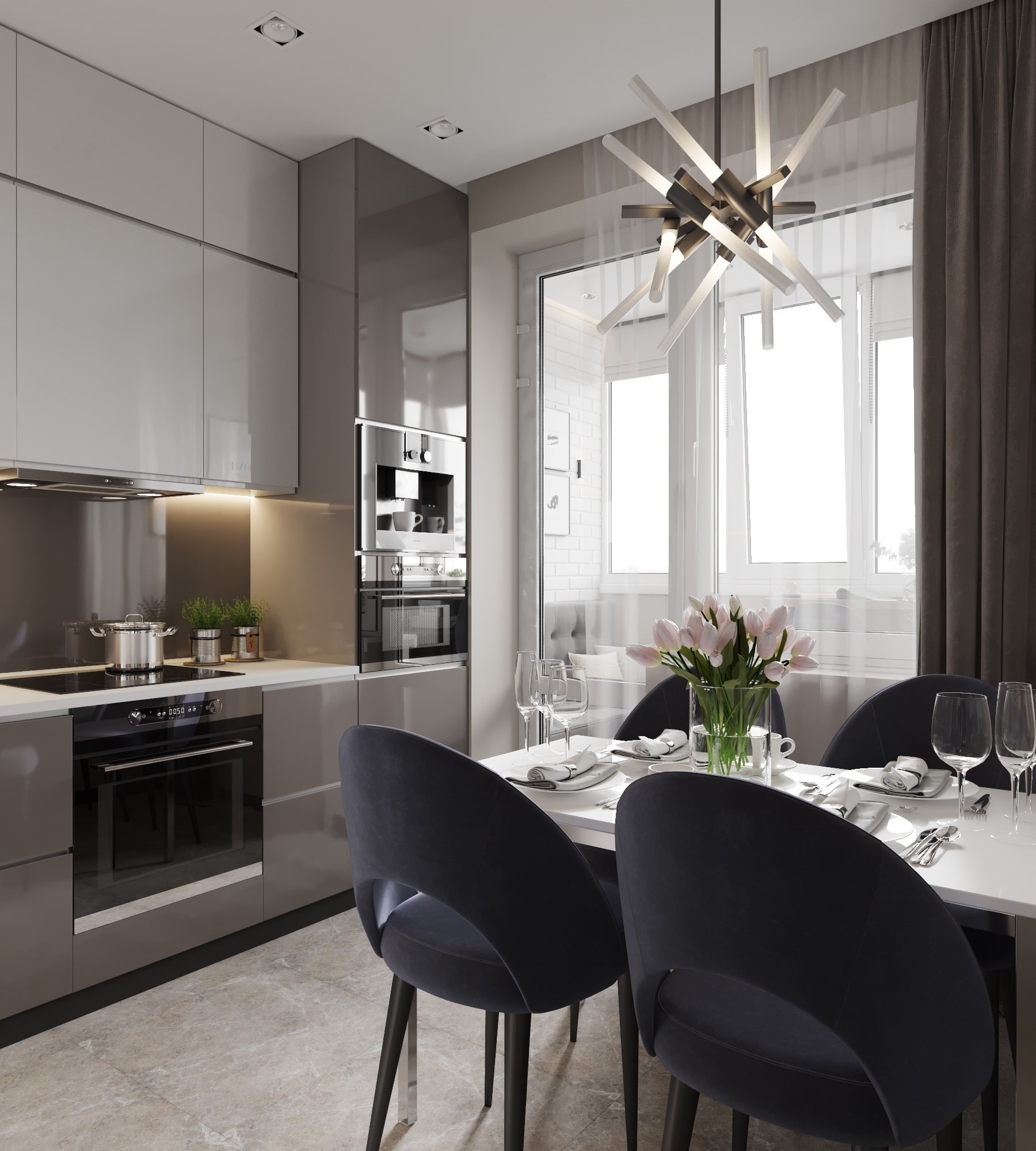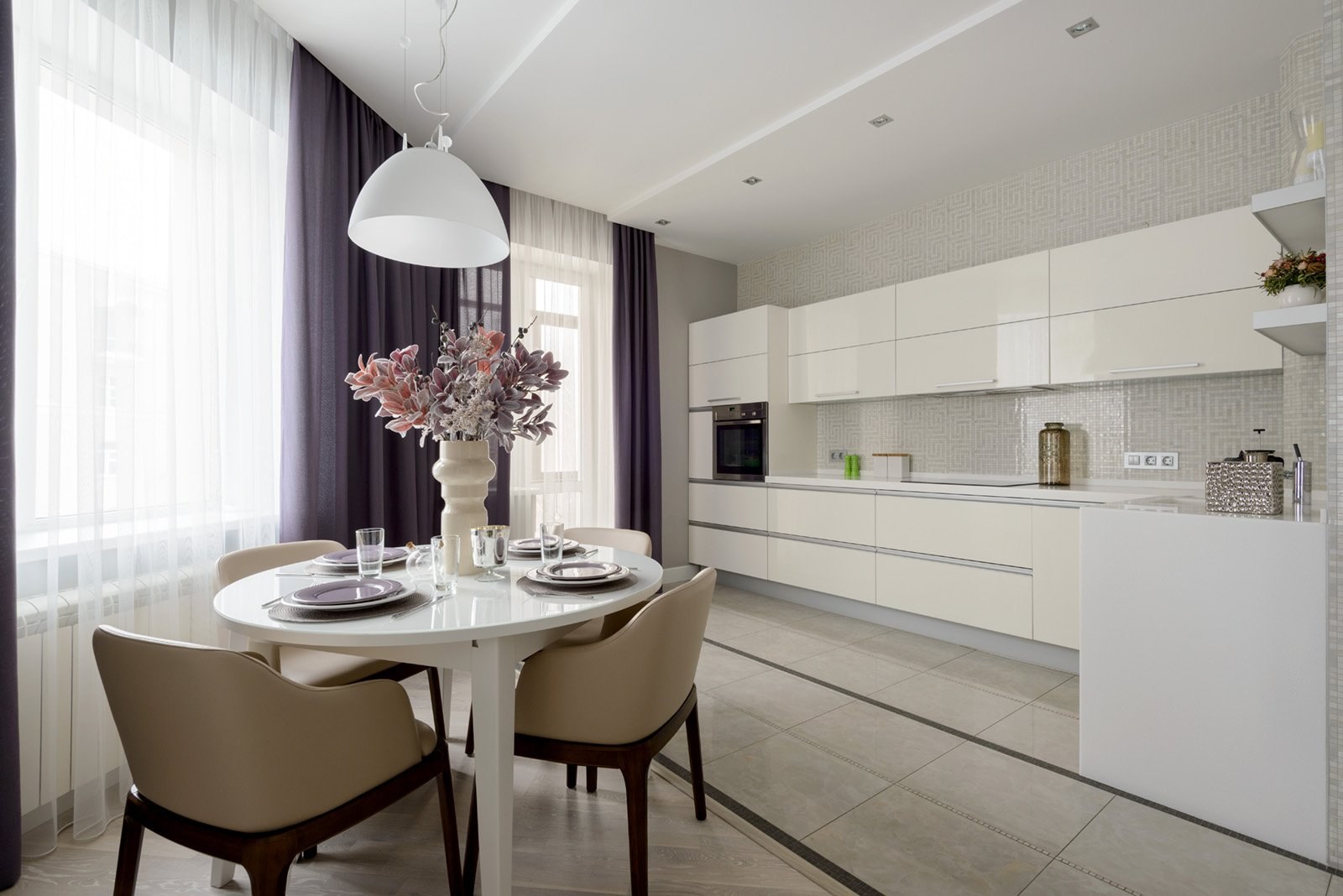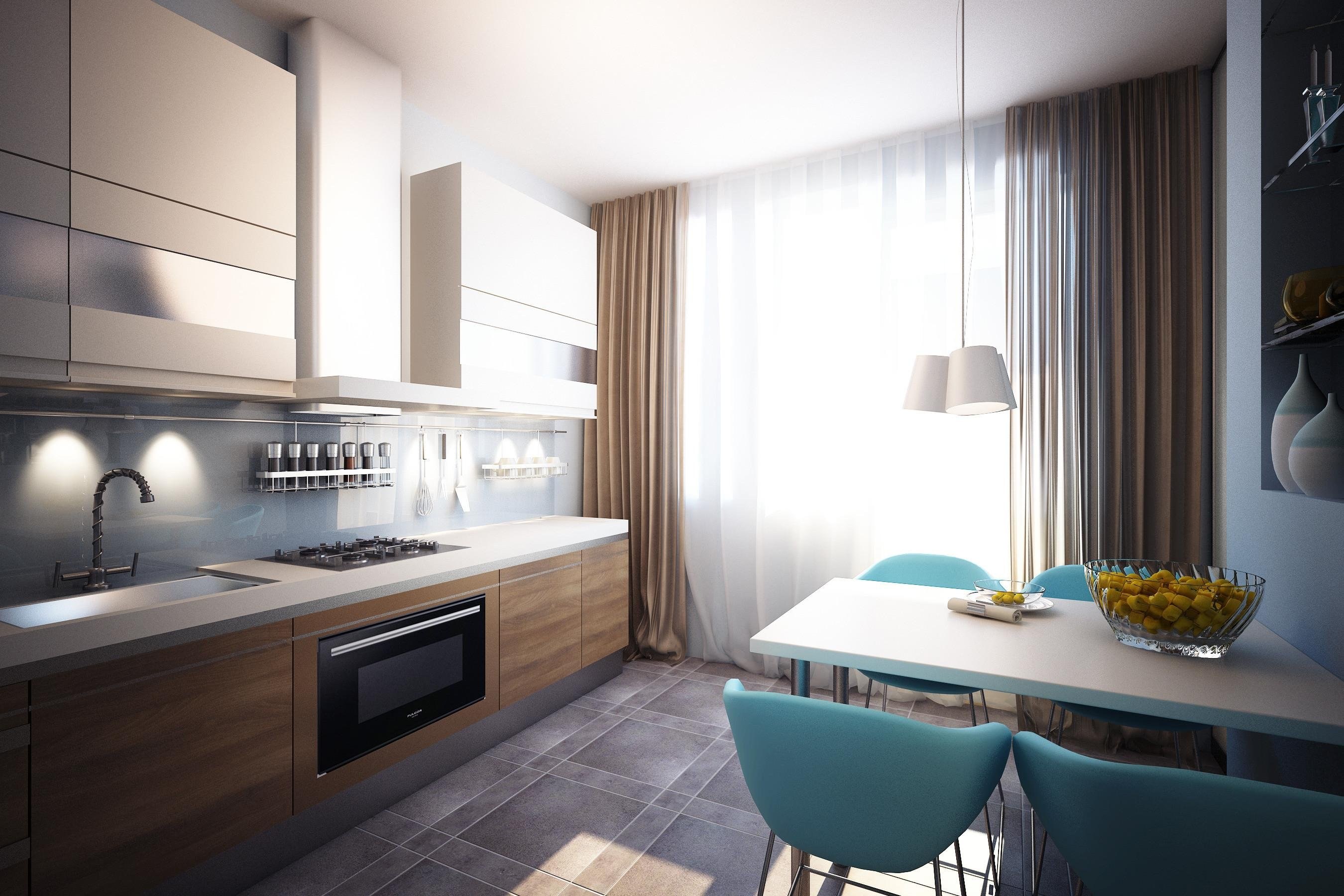 Шторы на кухню в современном стиле в интерьере кухни