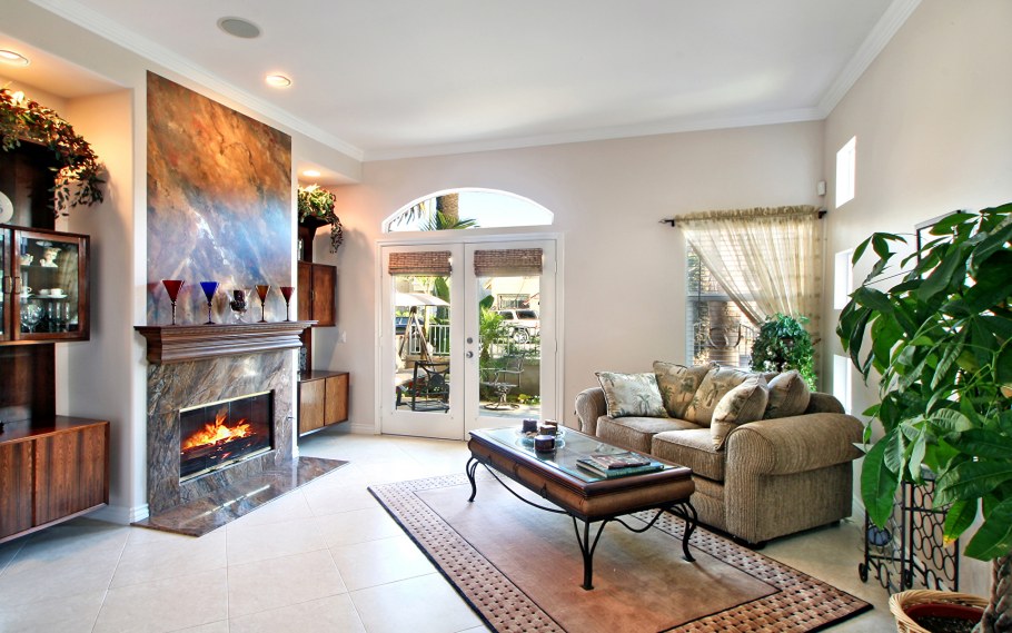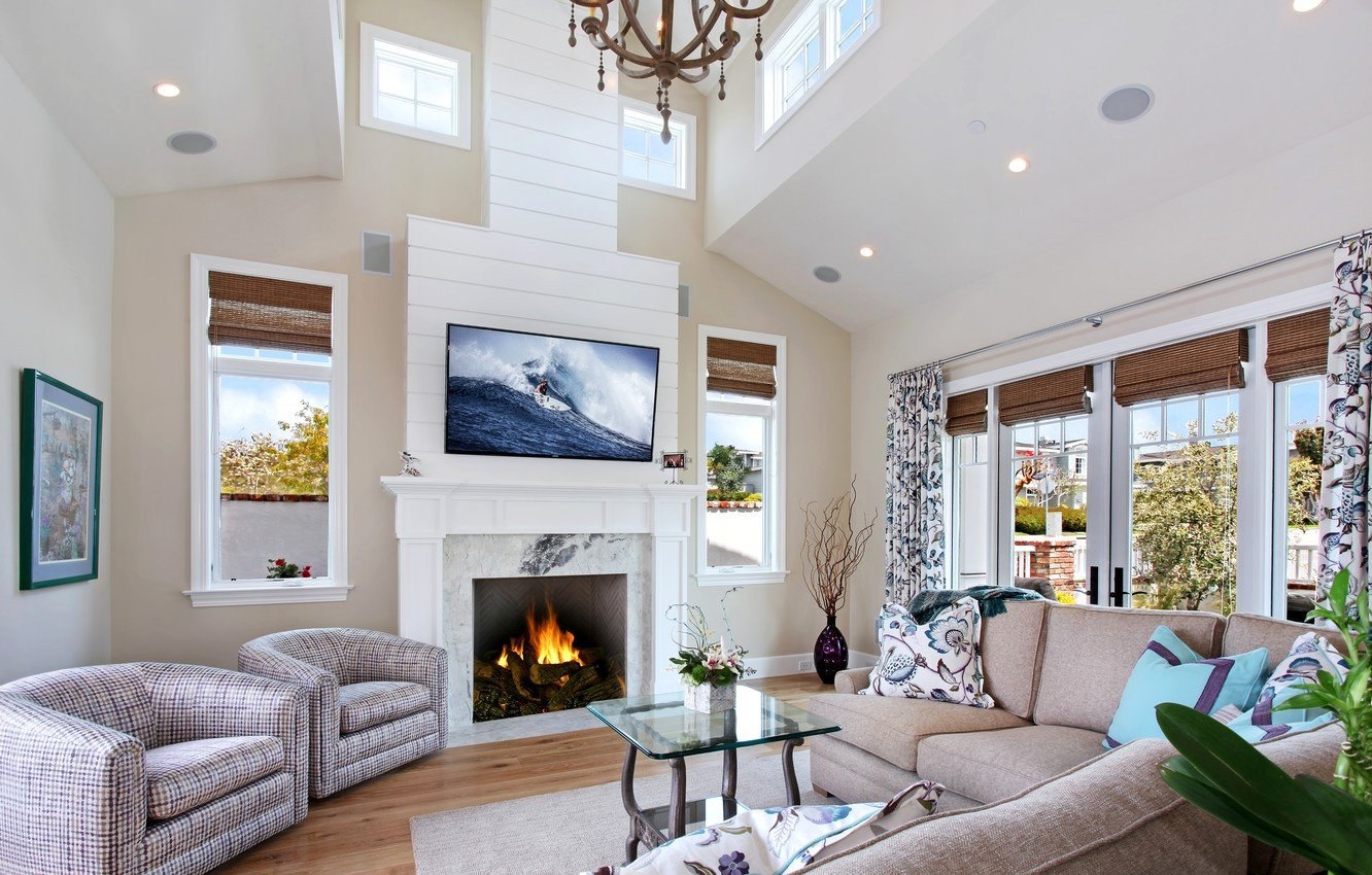 Интерьер для гостиной комнаты для среднего класса с камином (80 фото)