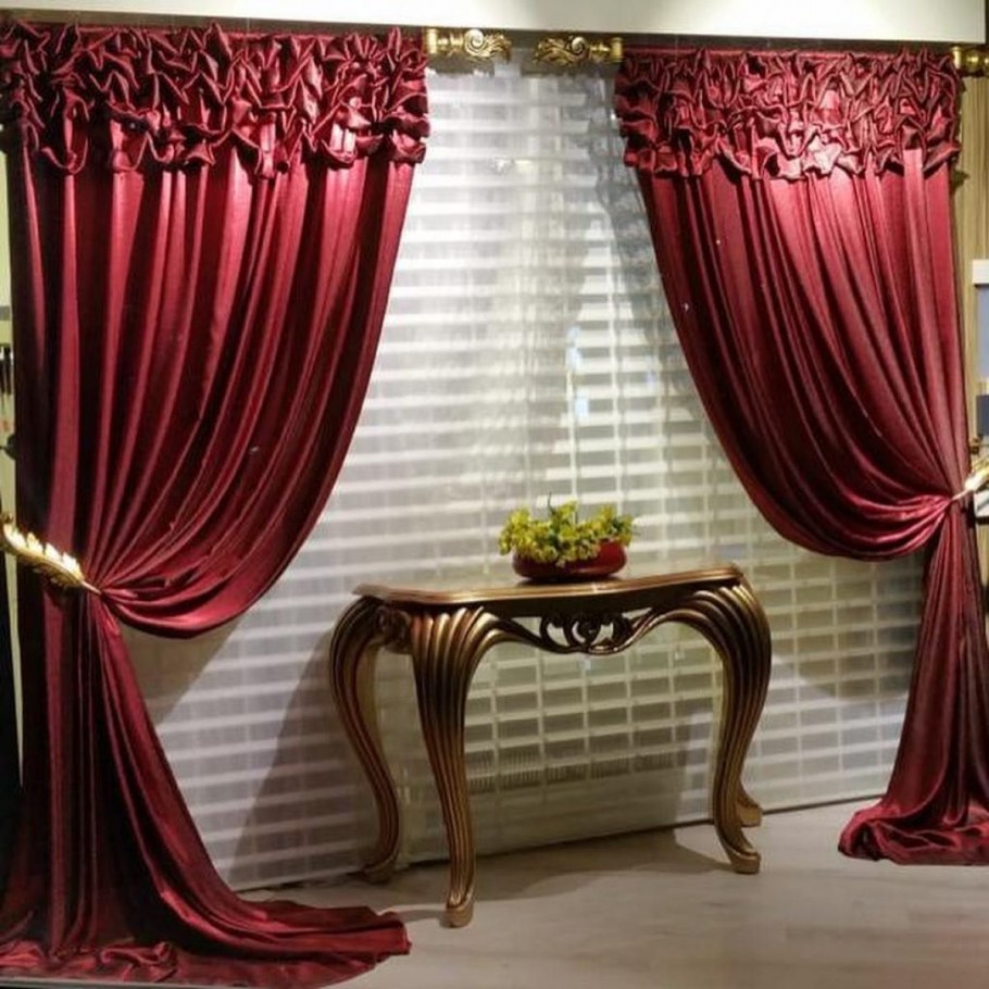 Шторы бордовые с золотом в интерьере (80 фото)