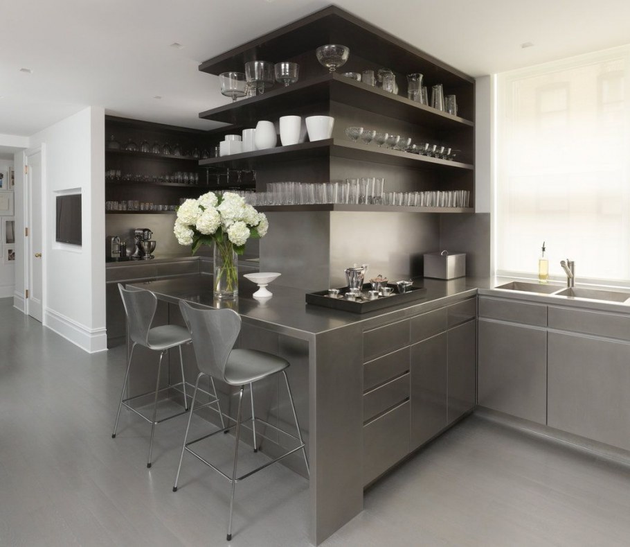 Кухня с металлическими полками