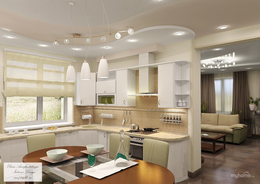 Интерьер кухни гостиной в доме