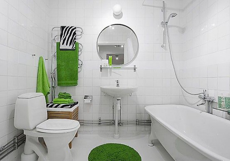 Белая ванная комната с яркими акцентами