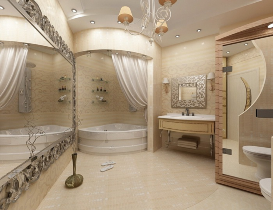Интерьер большой ванной комнаты