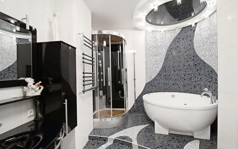 Ванная комната с мозаикой черно белая