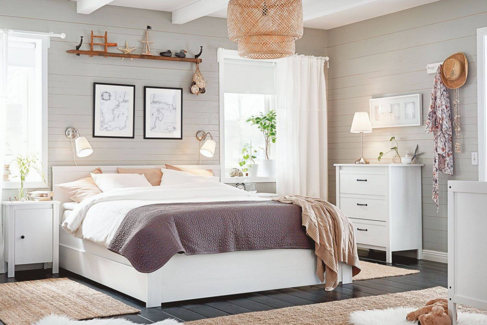 Спальня с белой мебелью икеа