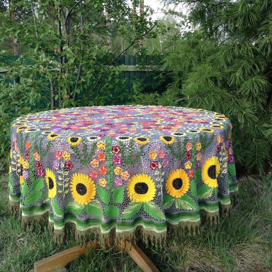 Вязаная цветная скатерть