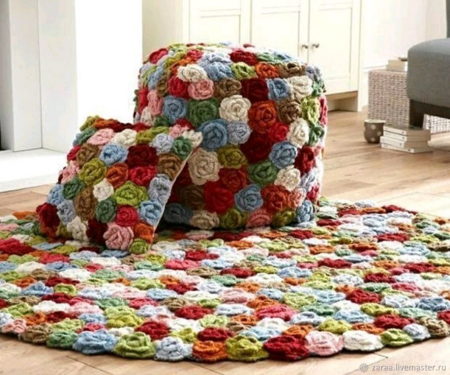 Коврик из вязаных цветов