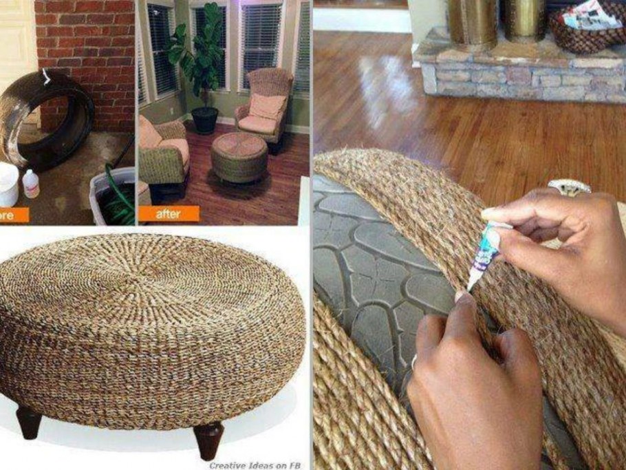 Пуфик из покрышки и веревки
