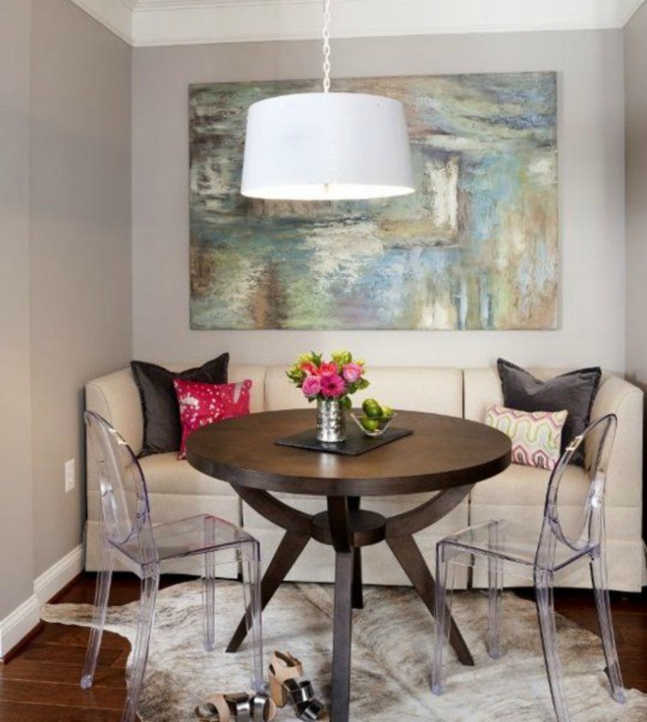 Обеденная зона с диваном и круглым столом в интерьере (76 фото)