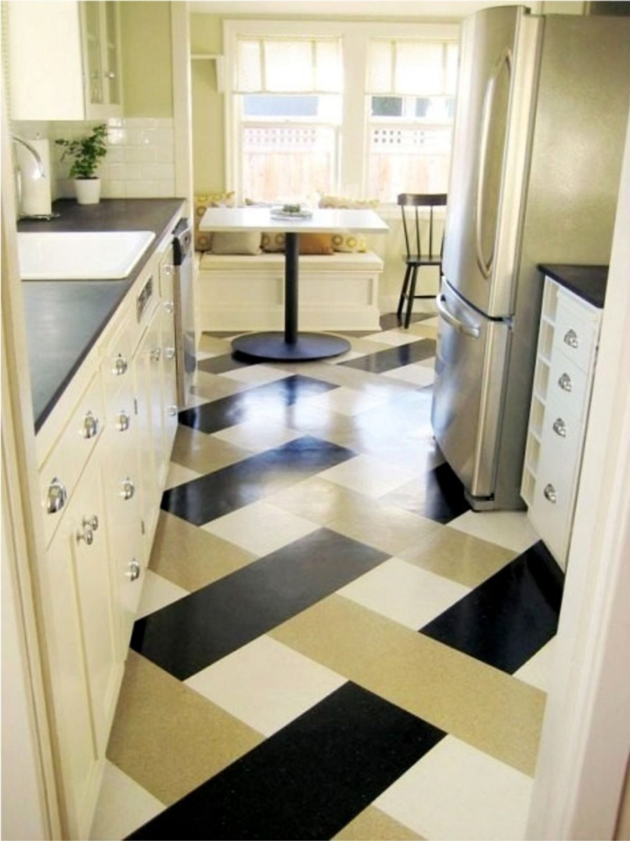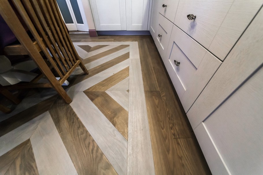 Кафель елочкой на кухне на полу