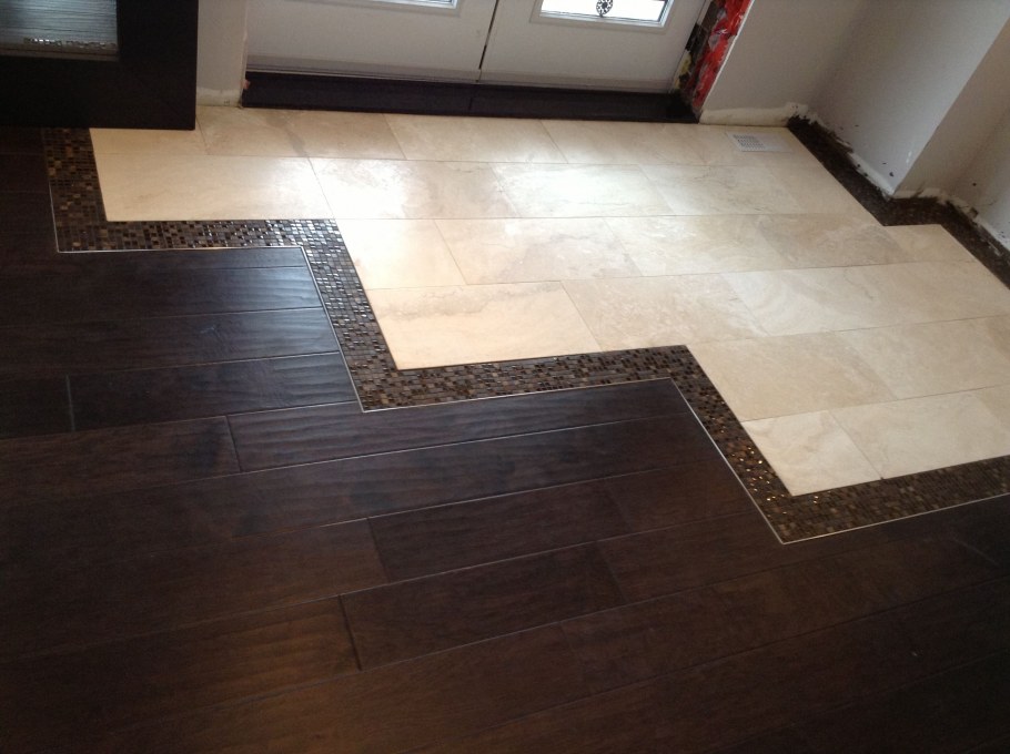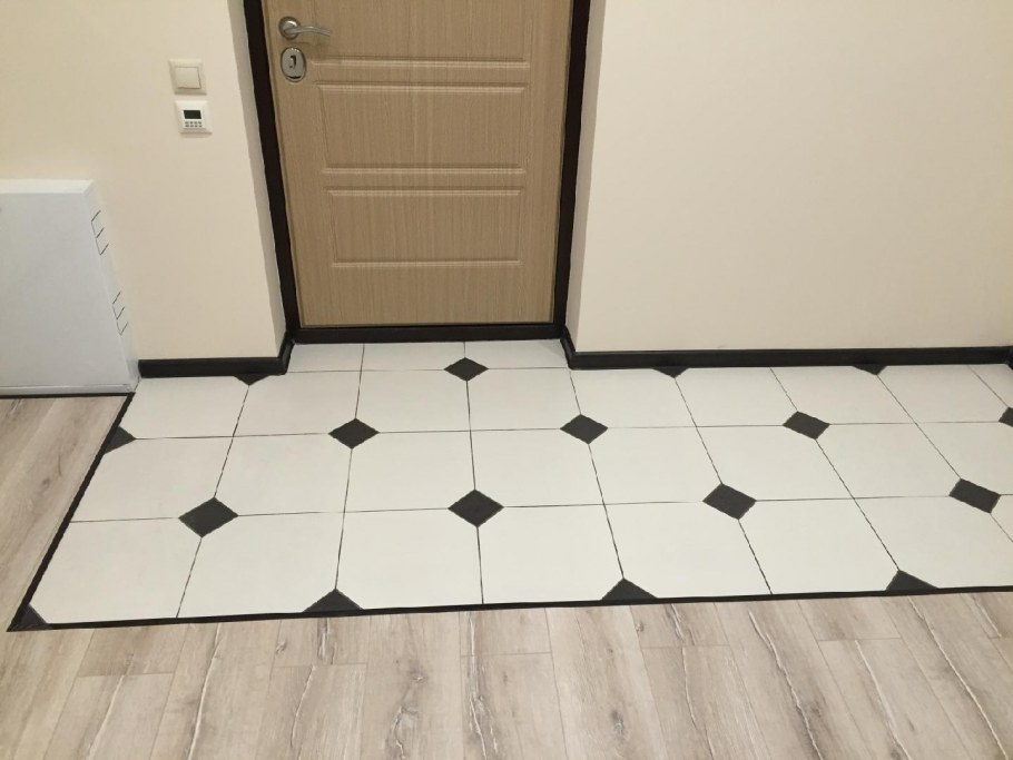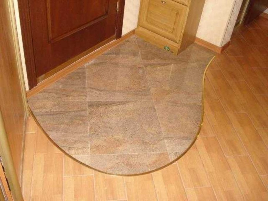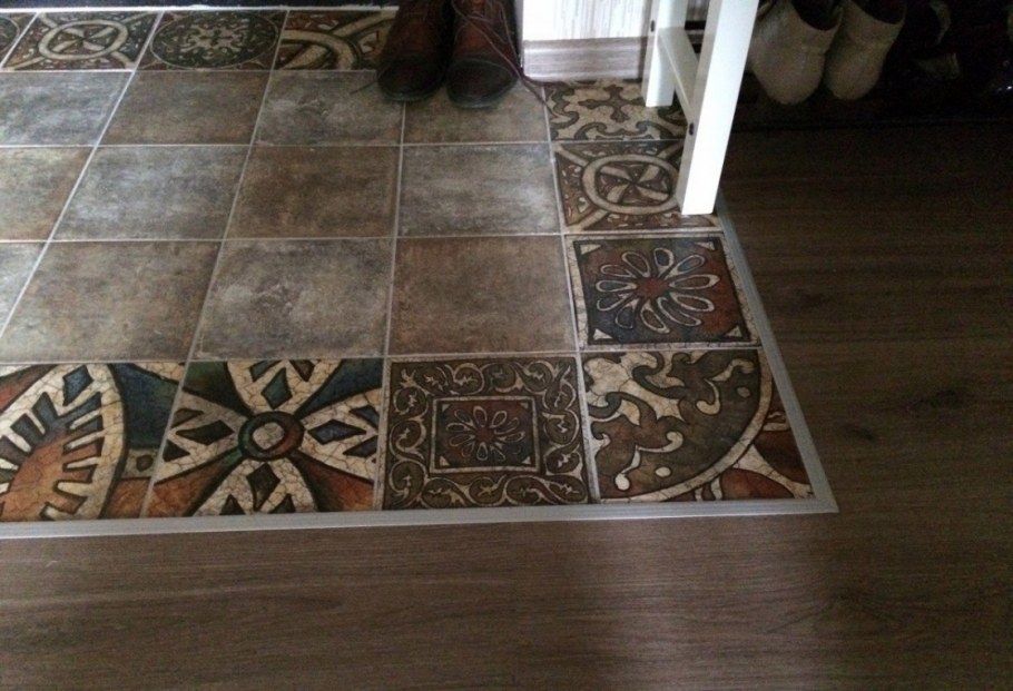 Кафель в прихожей на полу с ламинатом