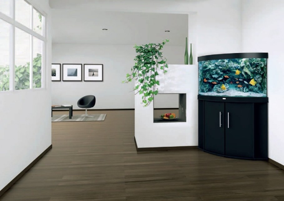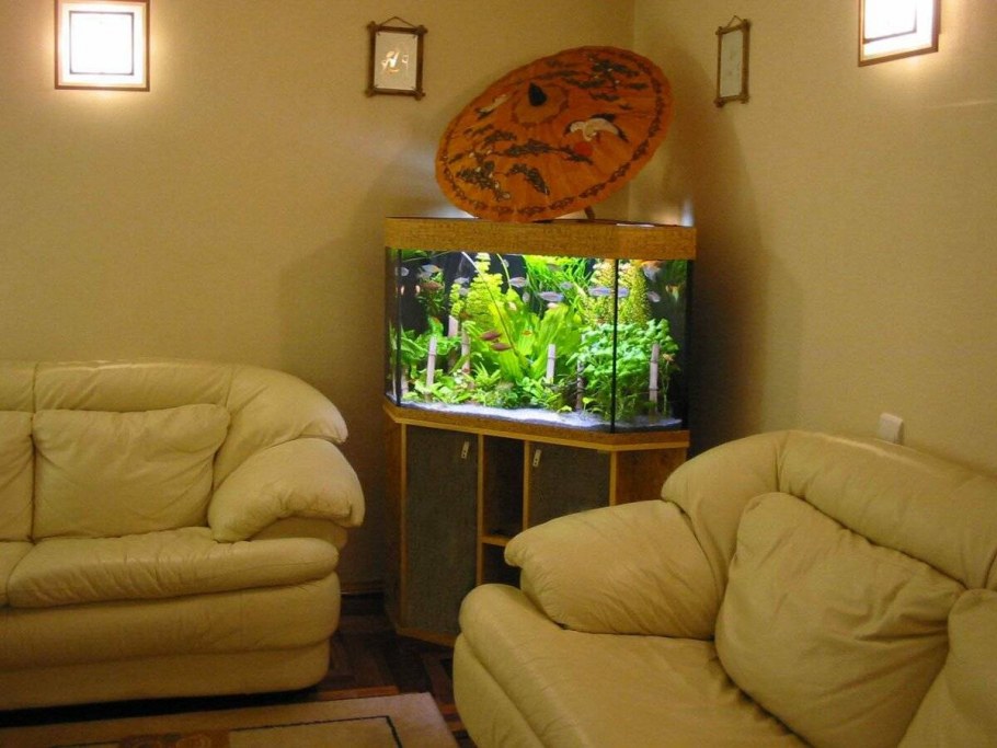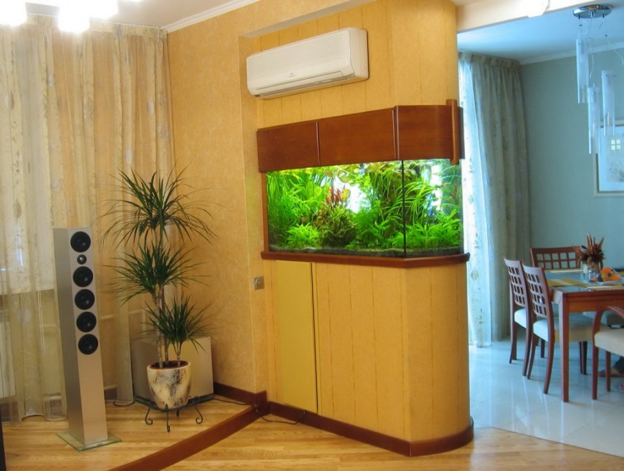 Угловой аквариум в интерьере квартиры
