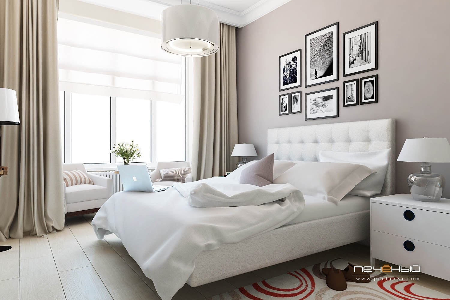 Уютная белая спальня