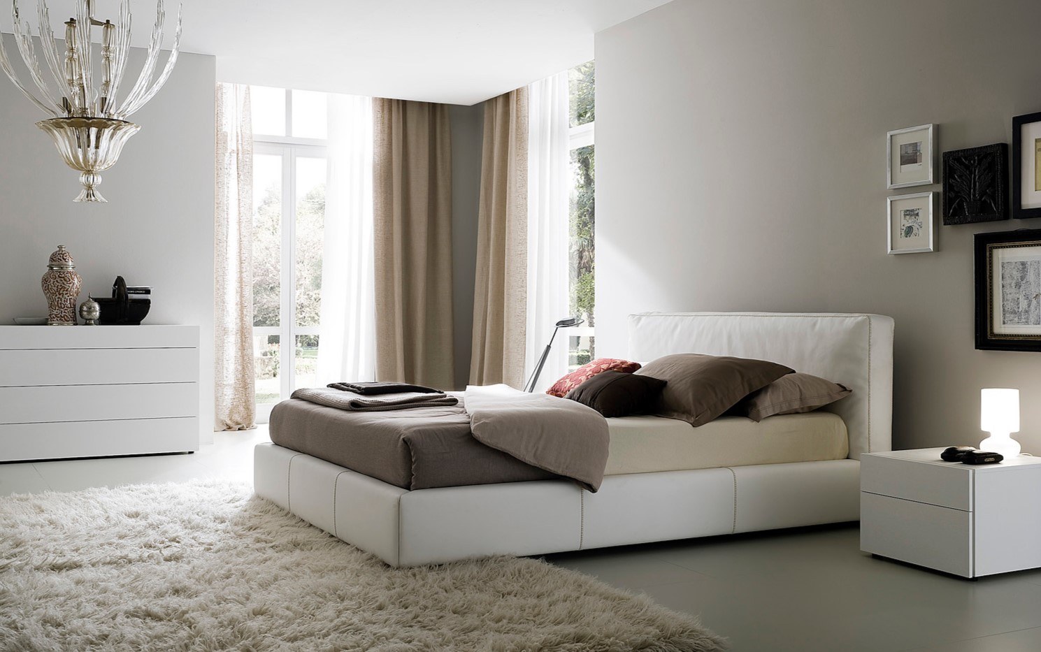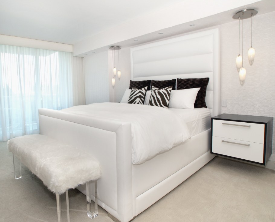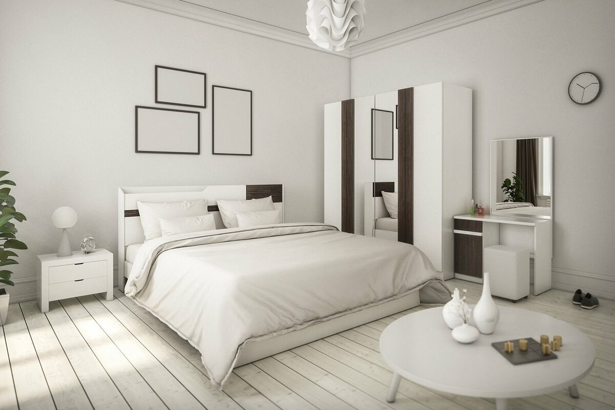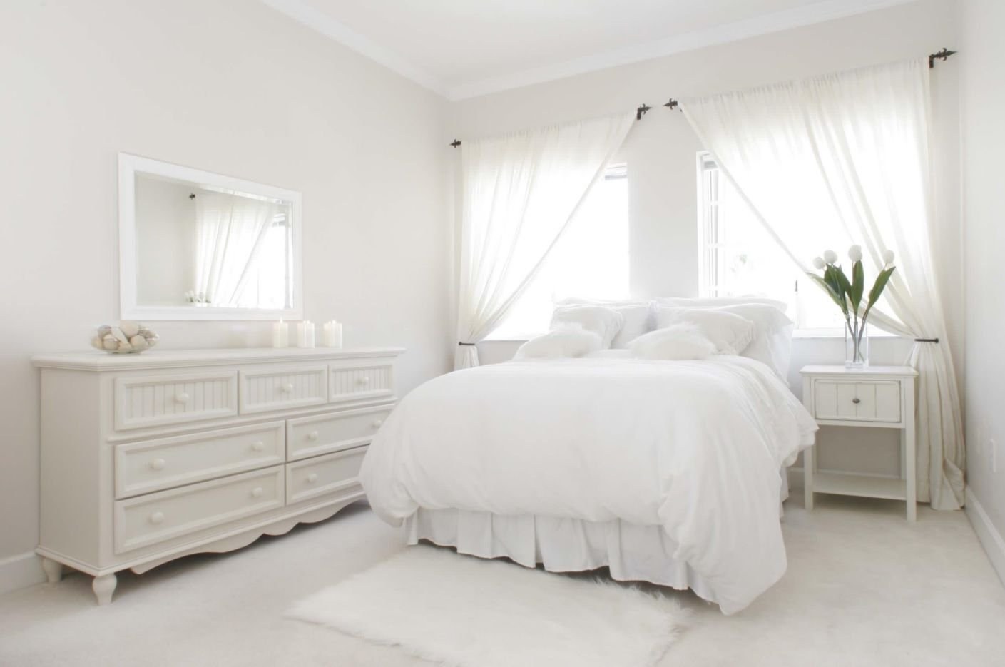 Белый спальный гарнитур в белой комнате