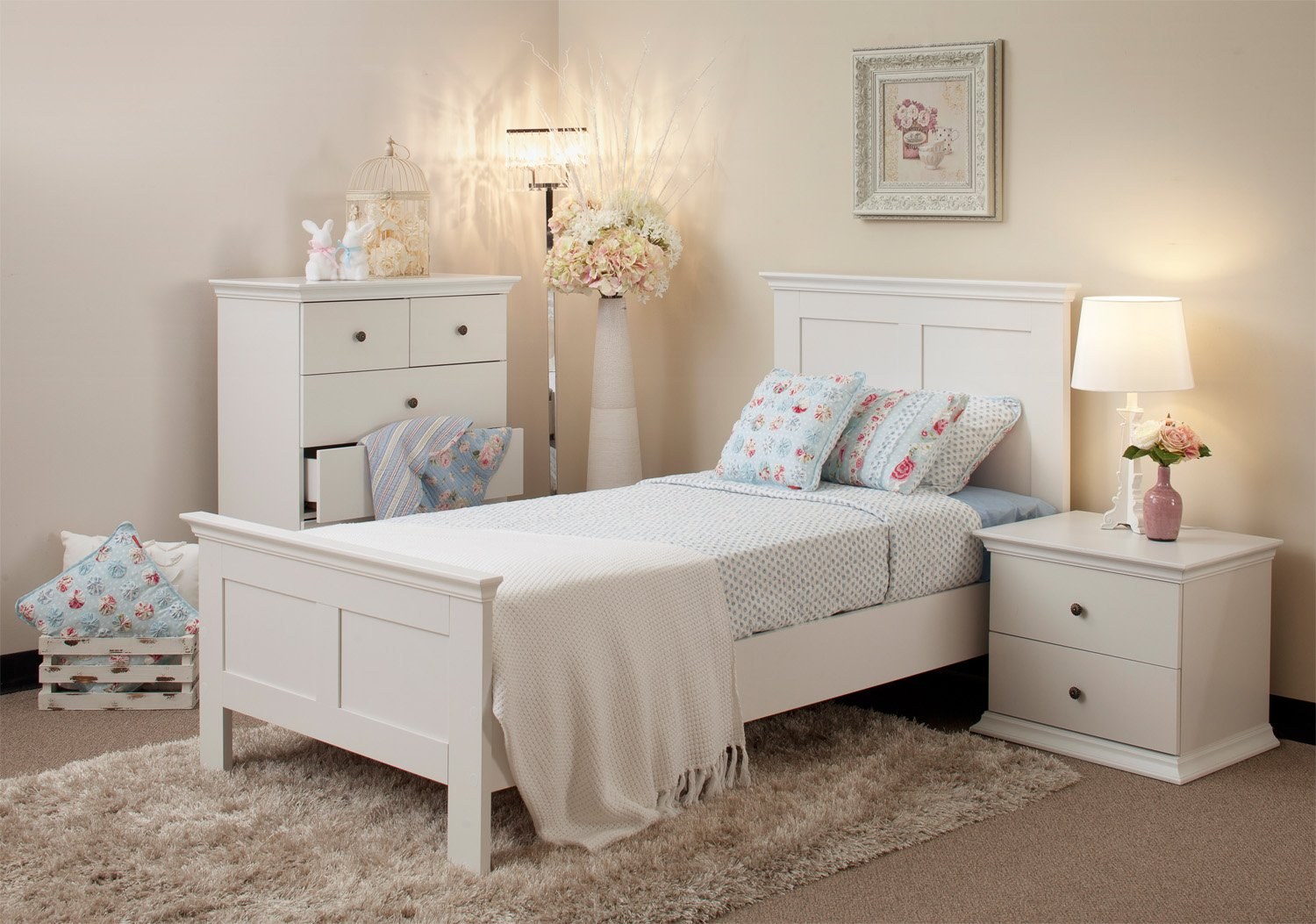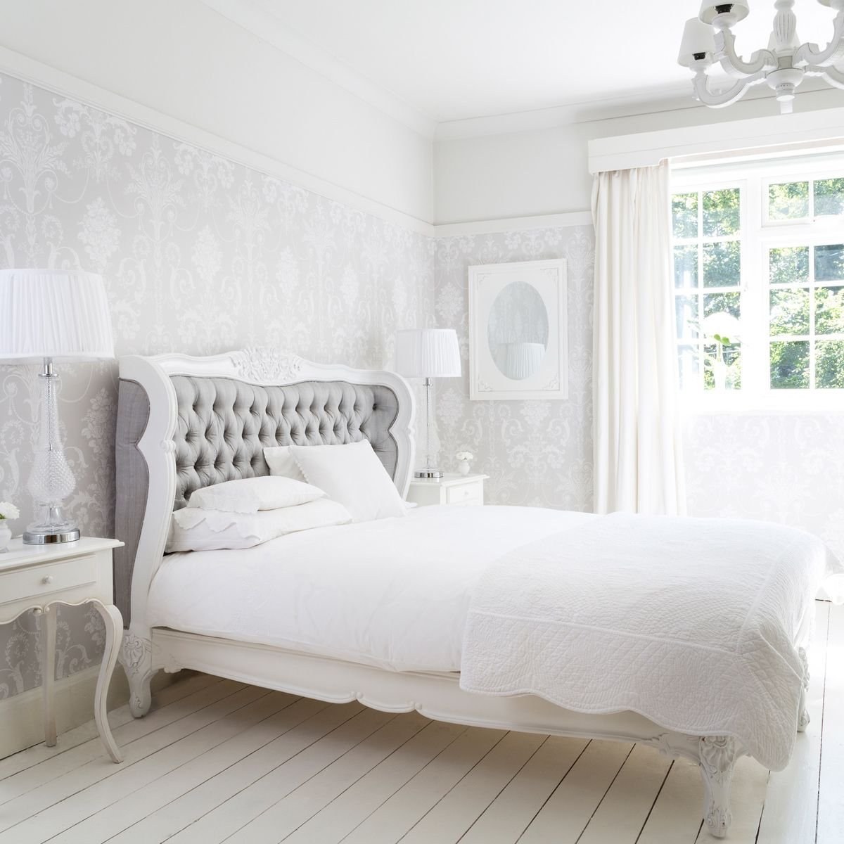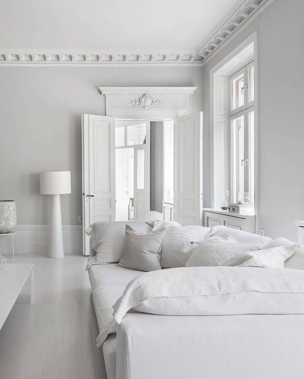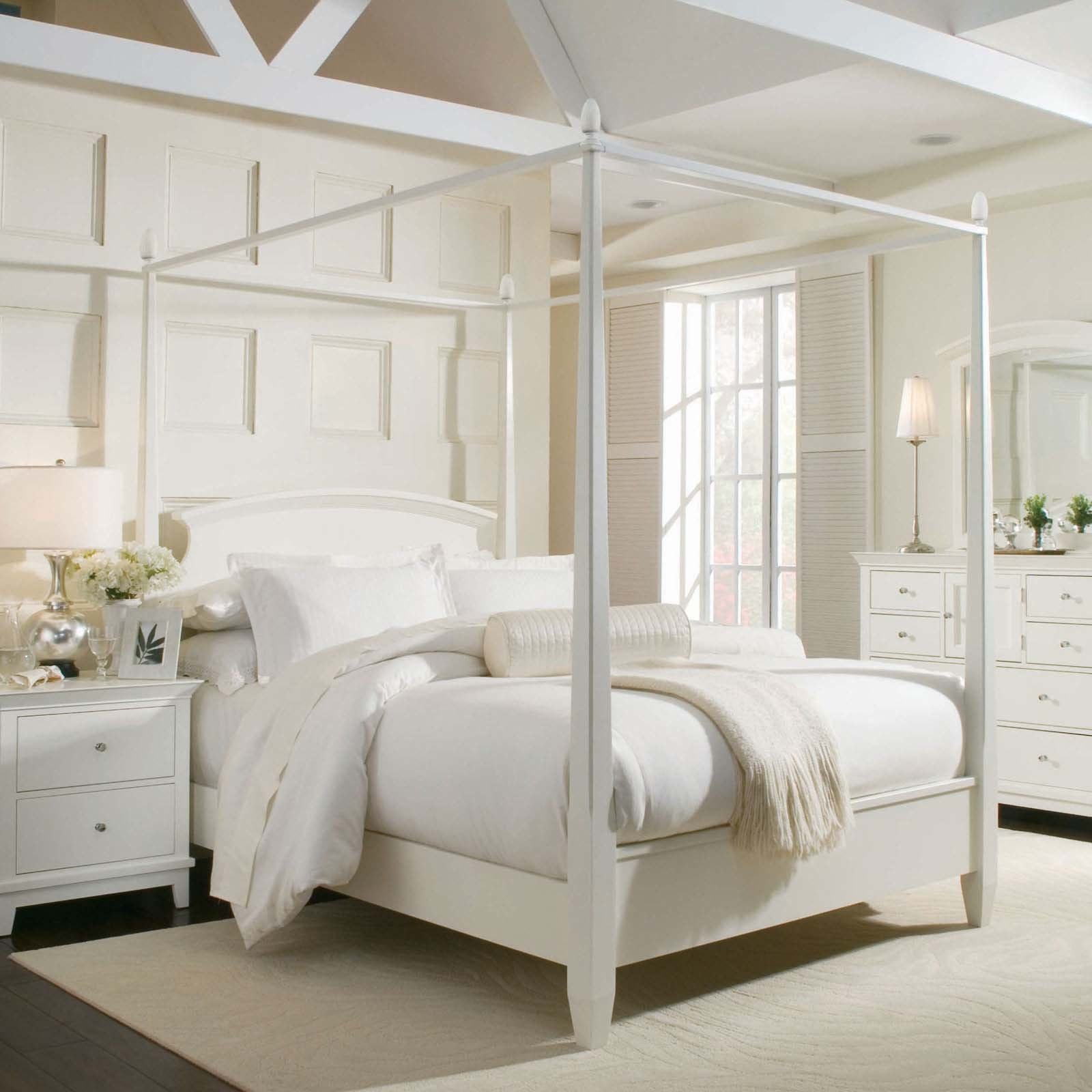 Белый спальный гарнитур в белой комнате