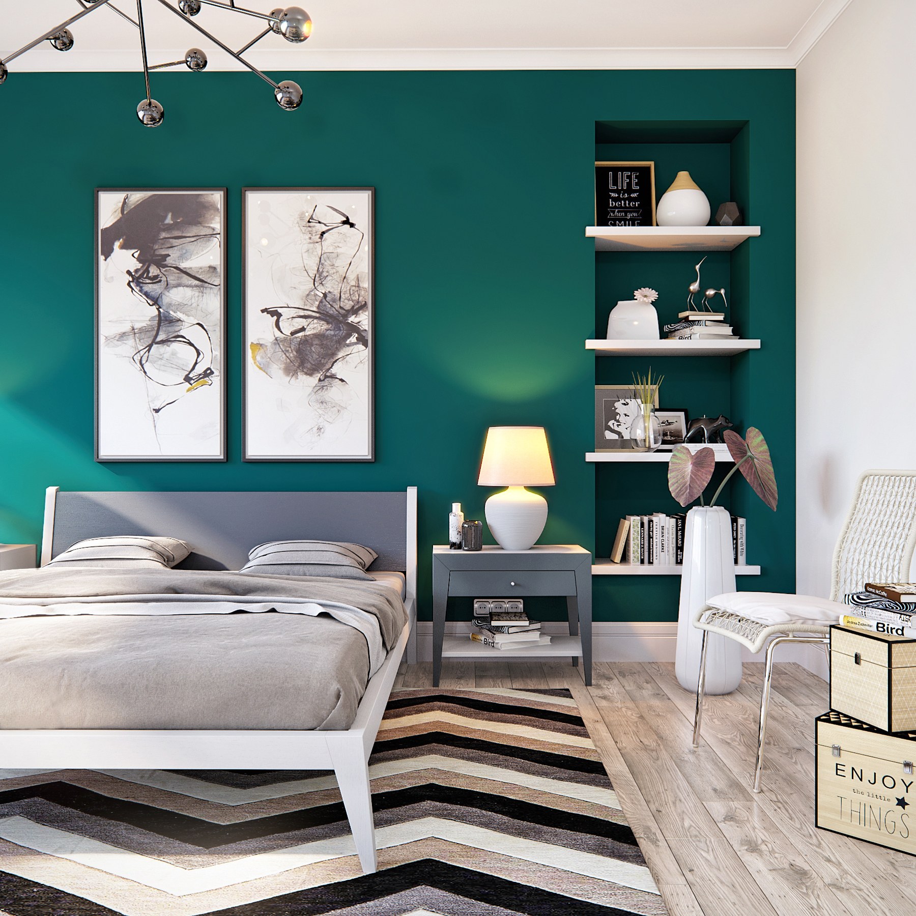 Скандинавский стиль в спальне зеленый цвет