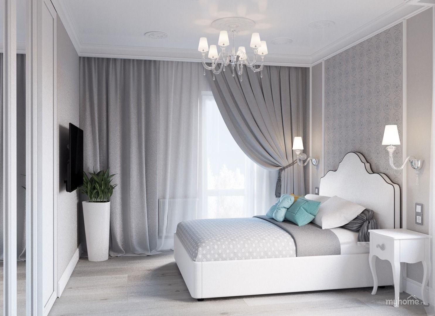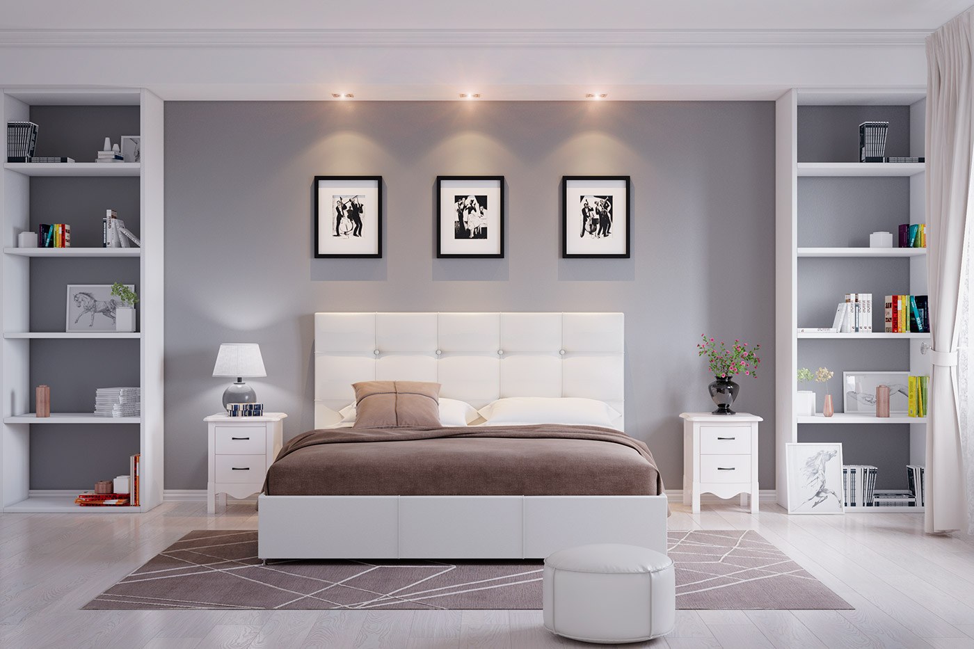 Спальня в серо белых тонах
