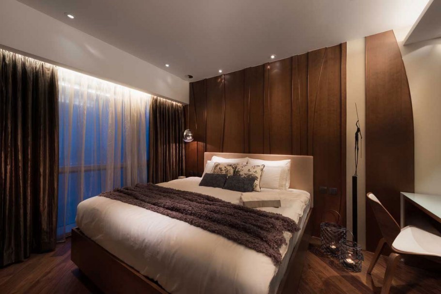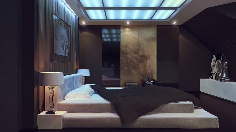 Современная спальня в шоколадных тонах