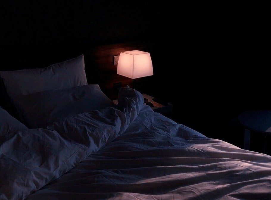 Девушка в постели в темноте