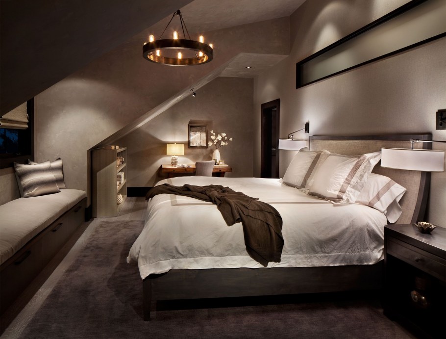 Светильники в мансардной спальне