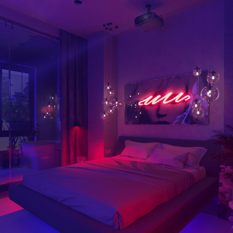 Спальня с неоновым освещением