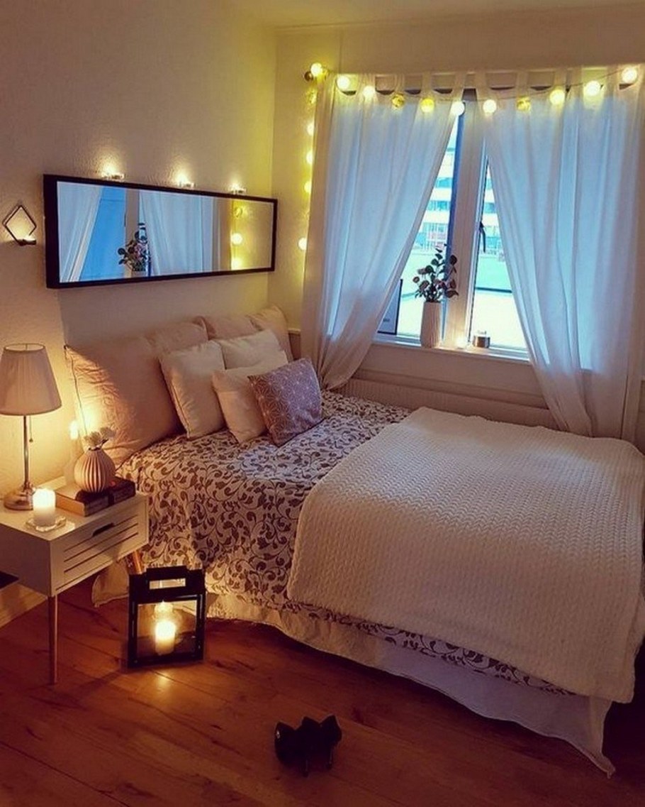 Гирлянда в интерьере спальни