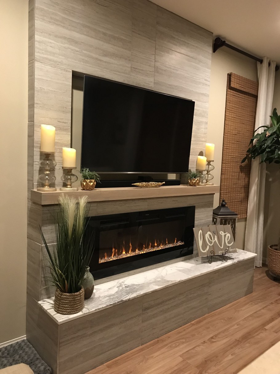 Биокамин в интерьере в современном стиле с телевизором (82 фото)