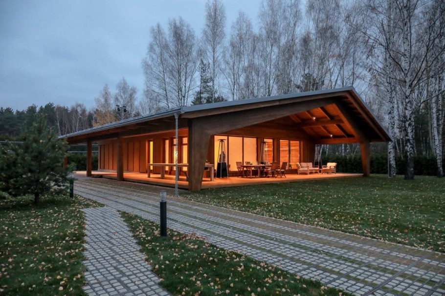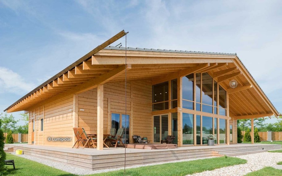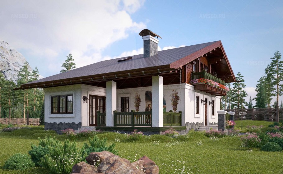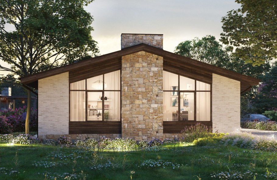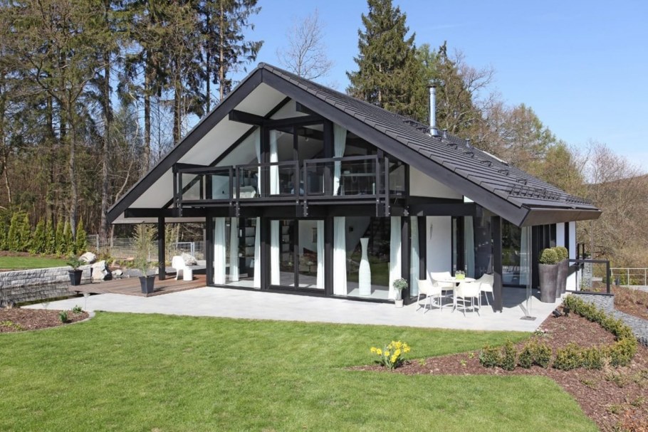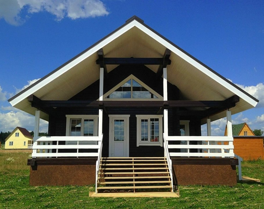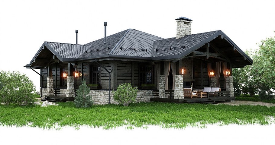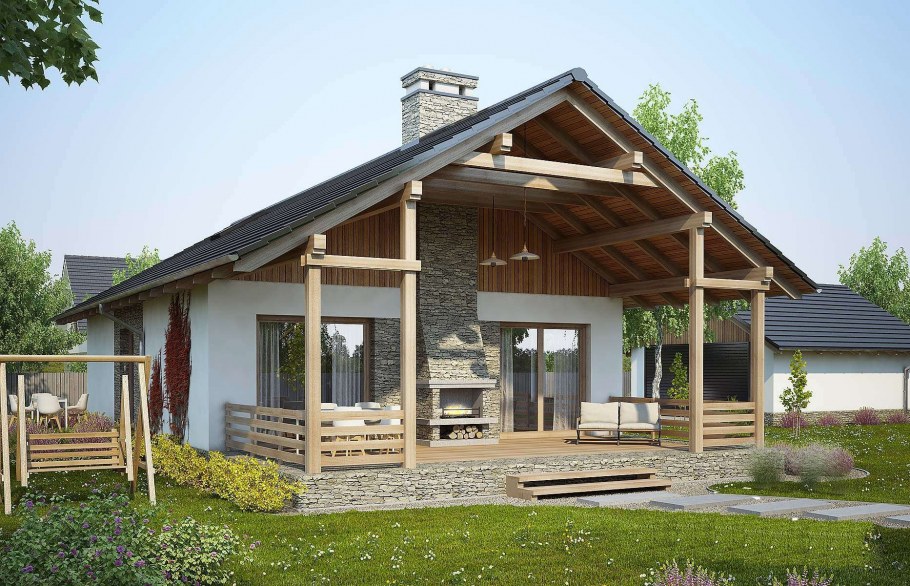 Одноэтажные дома с двускатной крышей в стиле шале (82 фото)