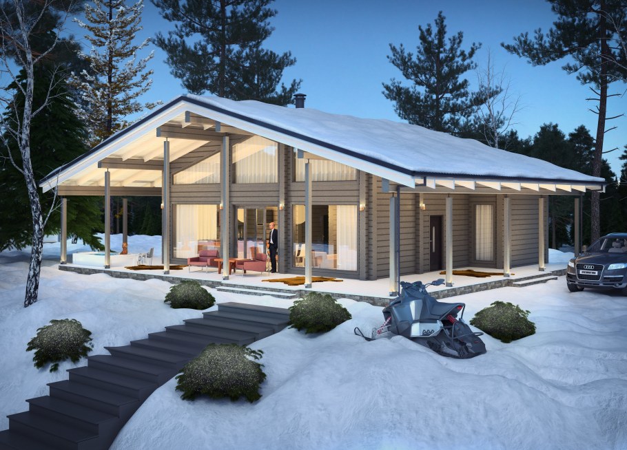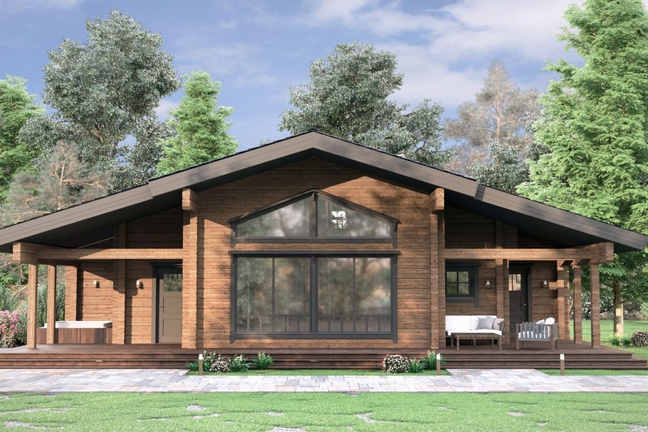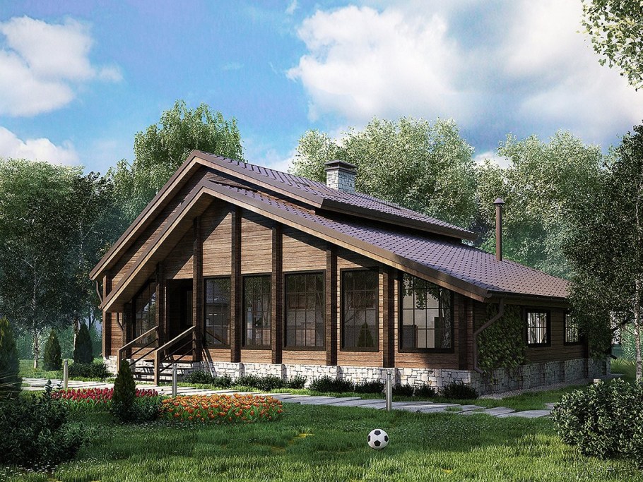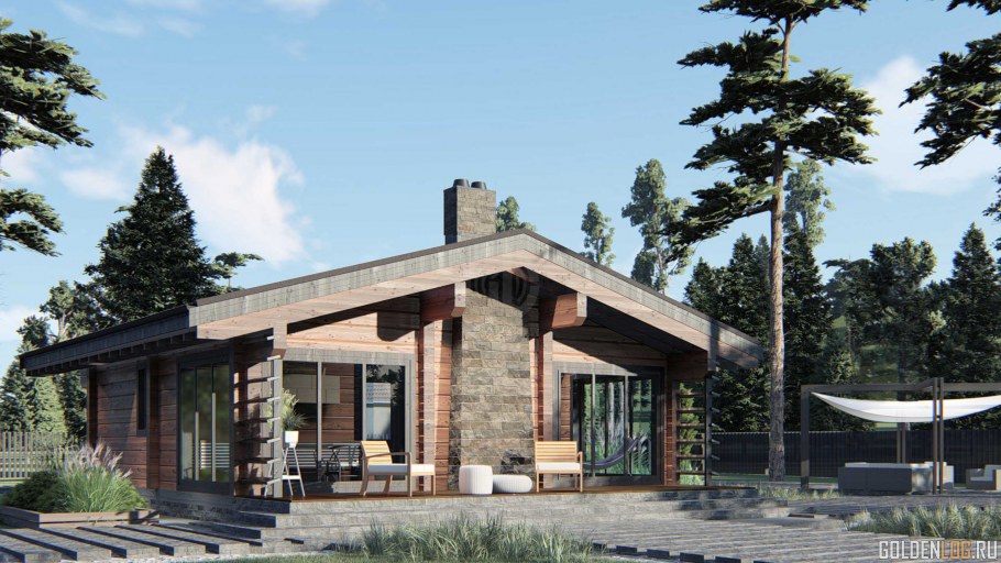 Одноэтажный дом Шале из клееного бруса 100 кв м
