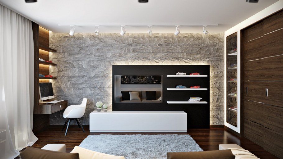 Отделка стен в зоне телевизора