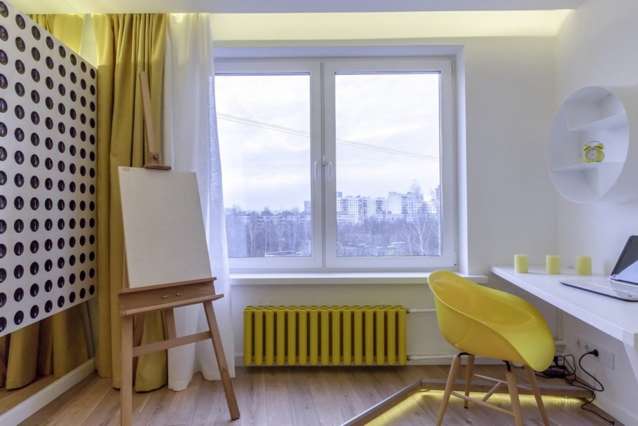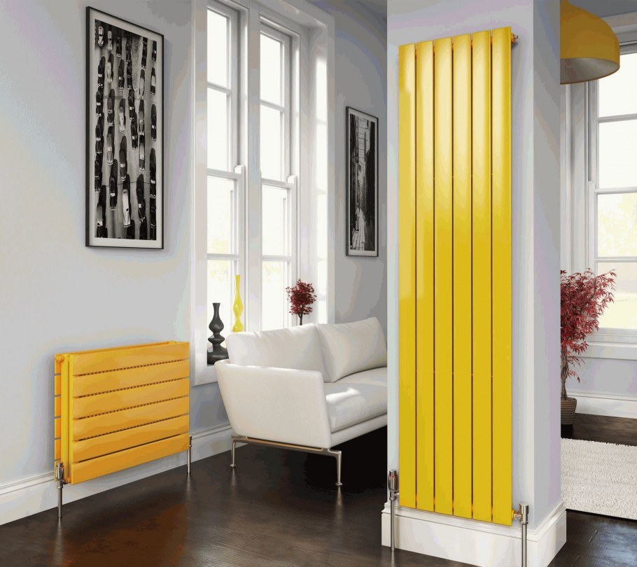 Желтые батареи в интерьере
