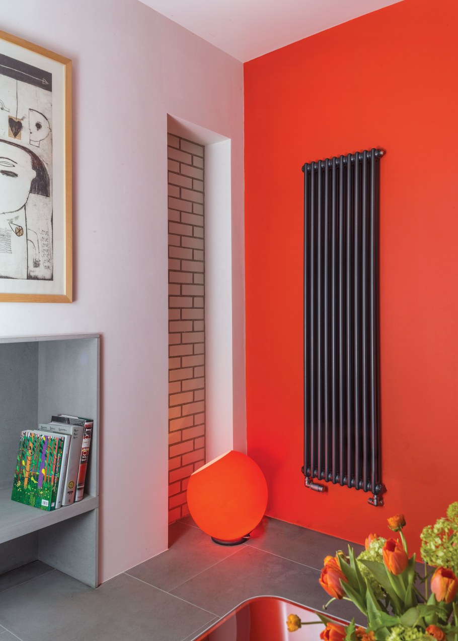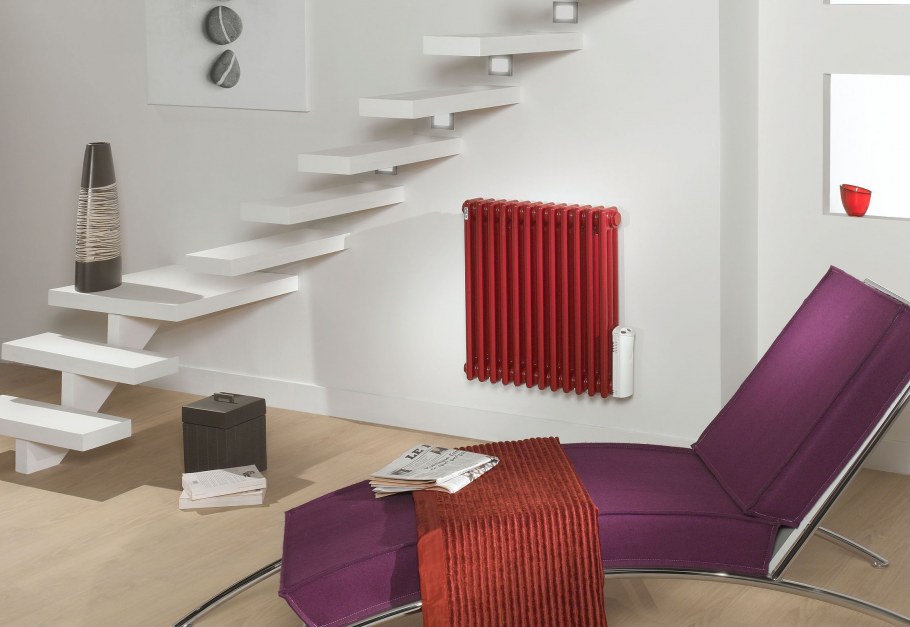 Красные батареи в интерьере