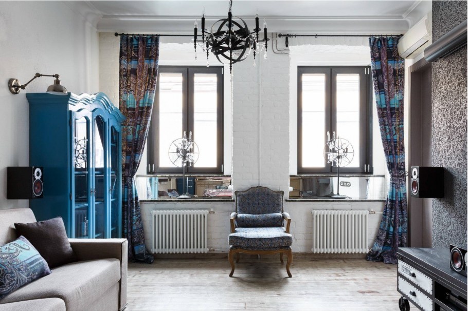 Синие шторы в стиле лофт