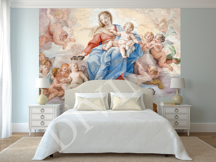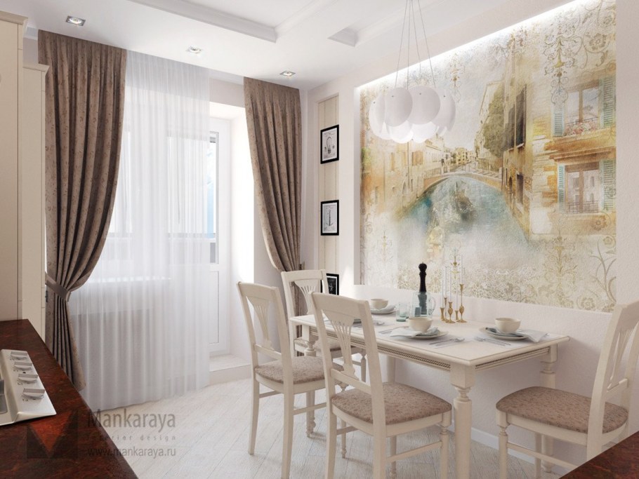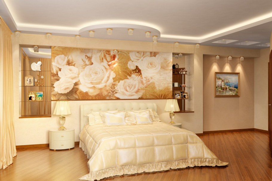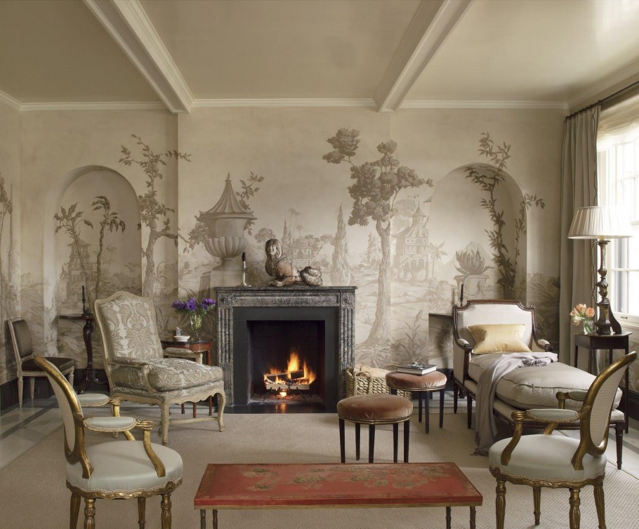 Фрески в интерьере гостиной в бежевых тонах (80 фото)