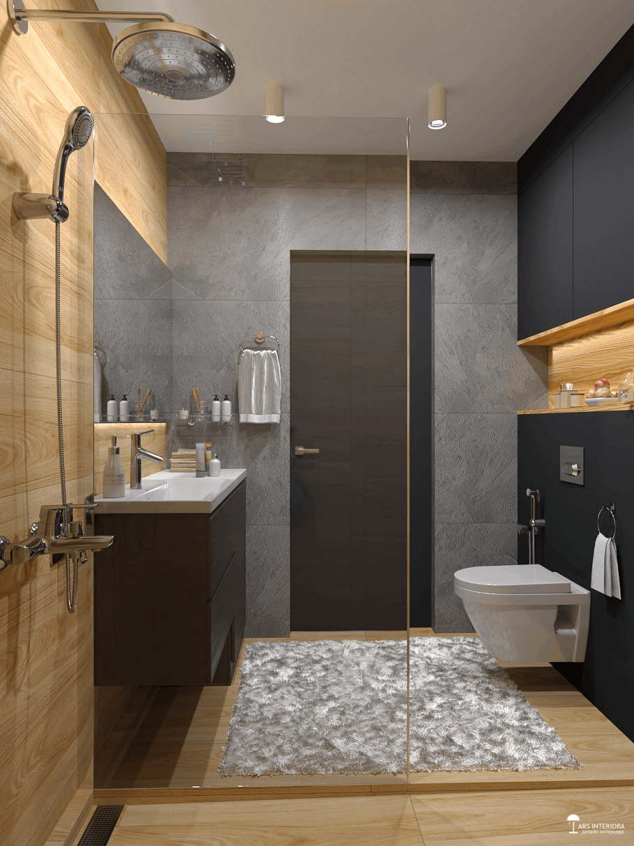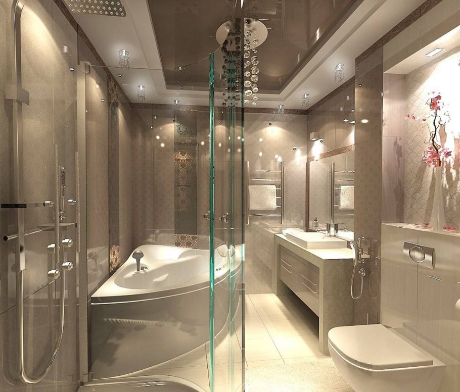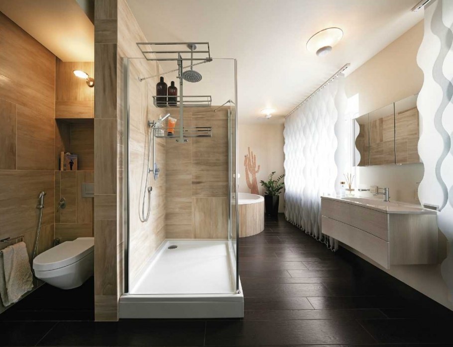 Дизайн ванной с душевой и туалетом в доме (79 фото)