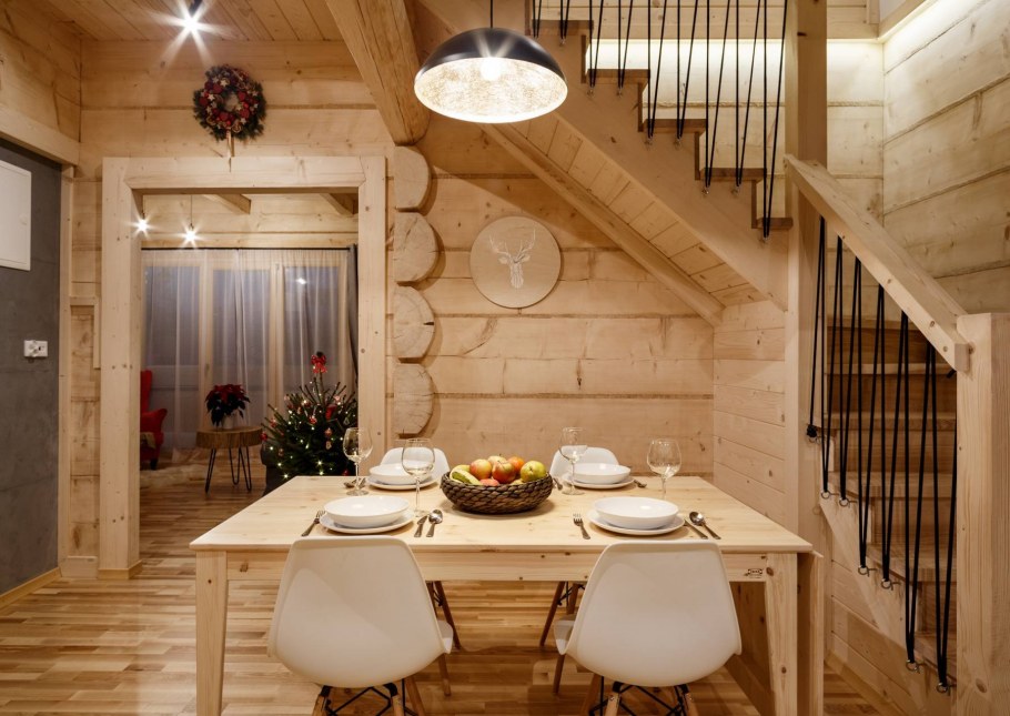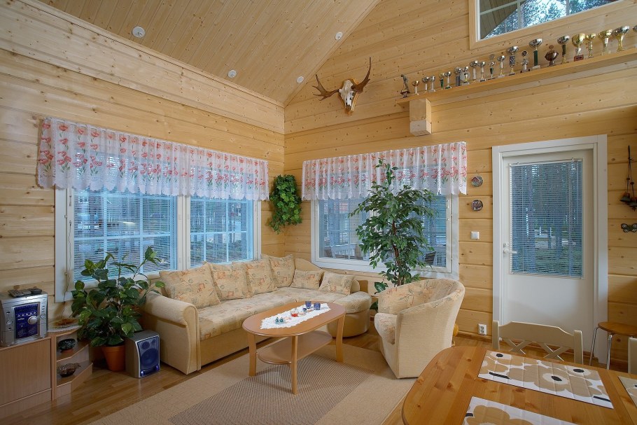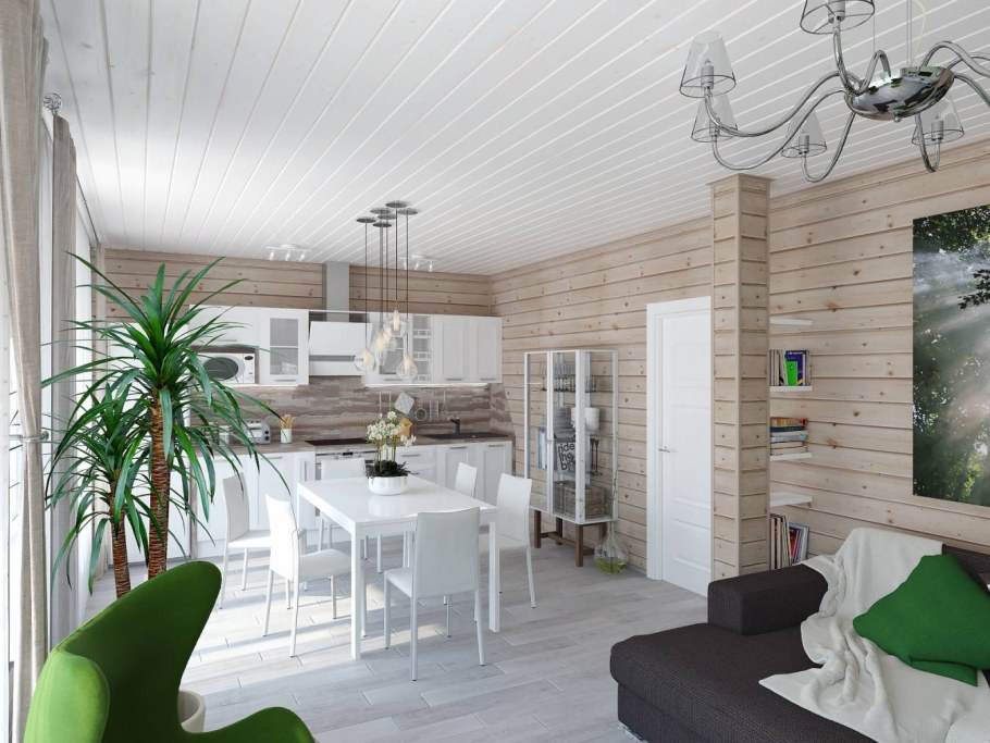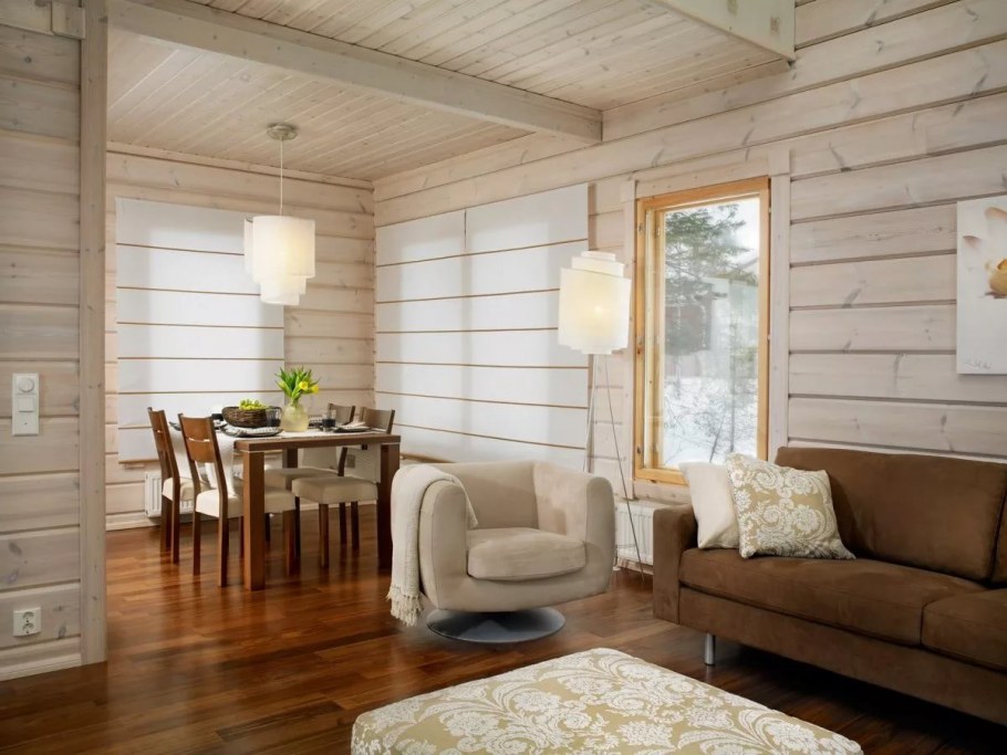 Интерьеры в домах из клееного бруса в скандинавском стиле