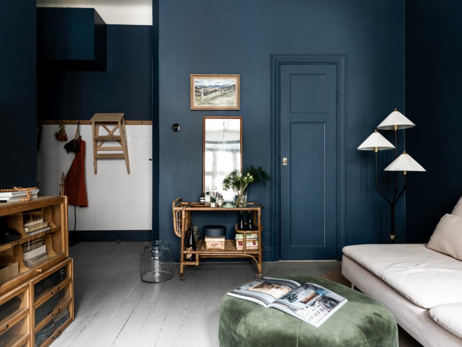 Интерьер гостиной в светлых тонах с яркими акцентами