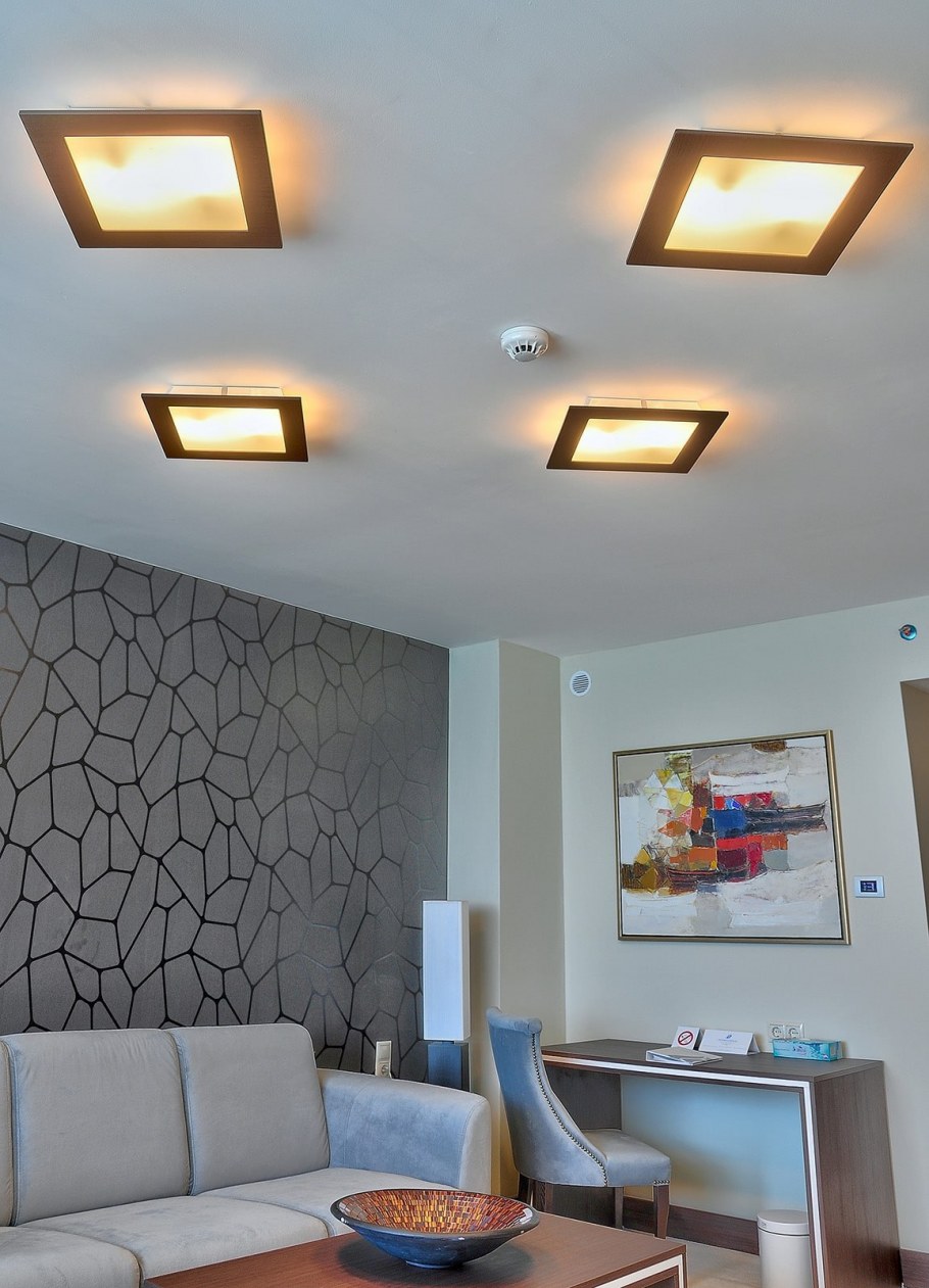 Квадратные потолочные светильники в интерьере