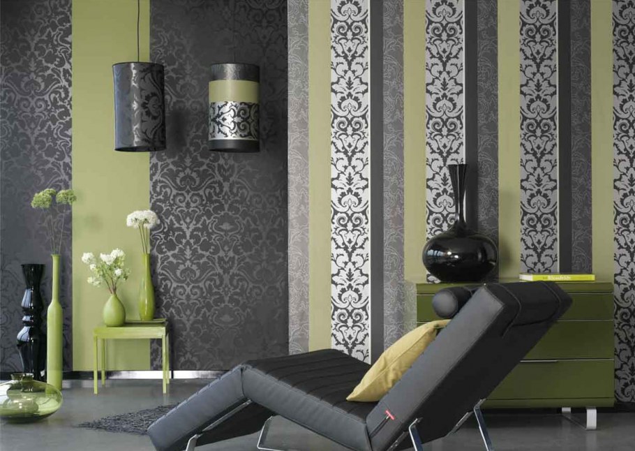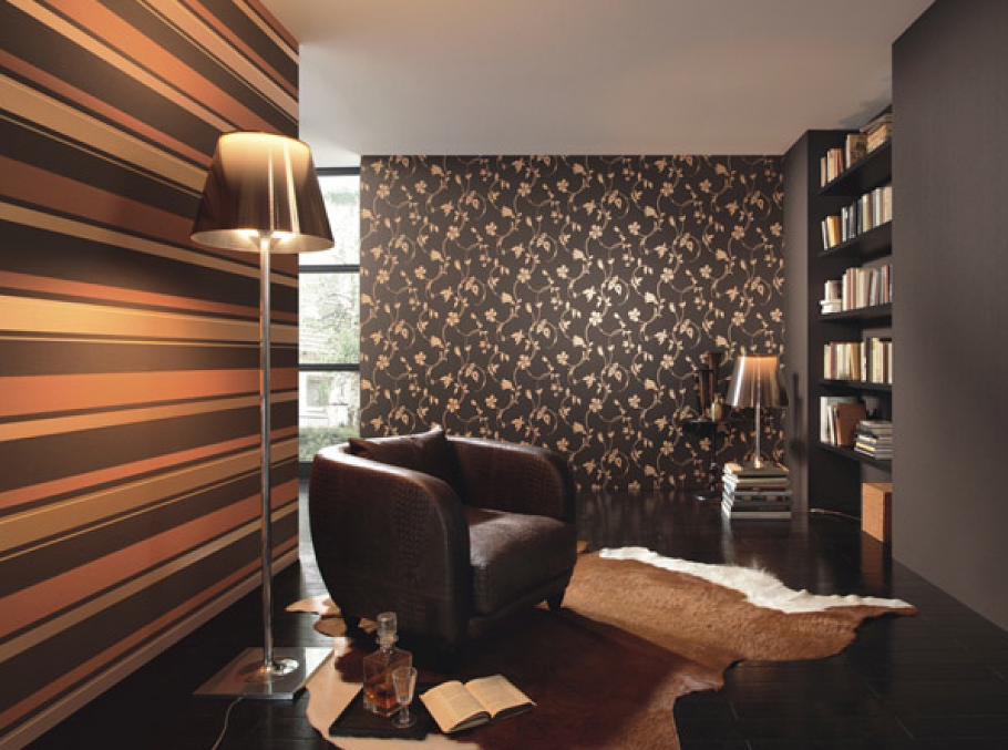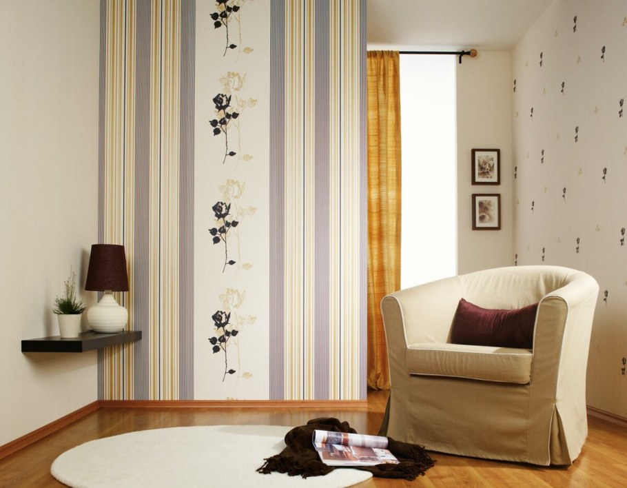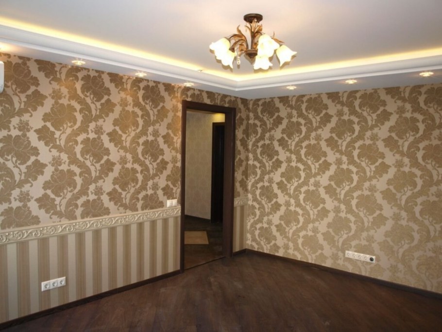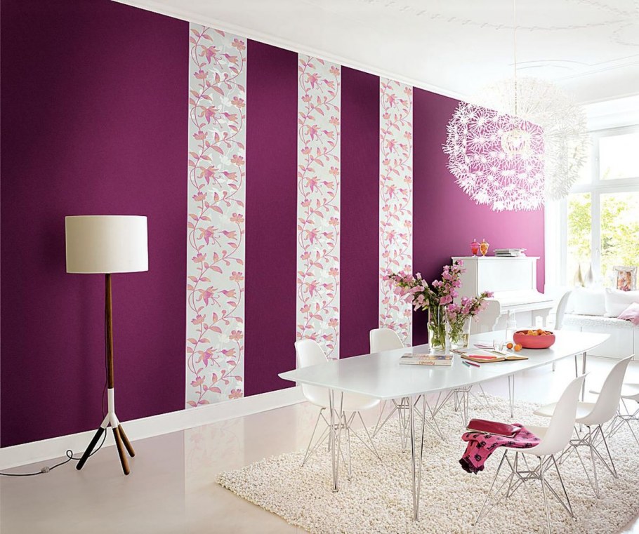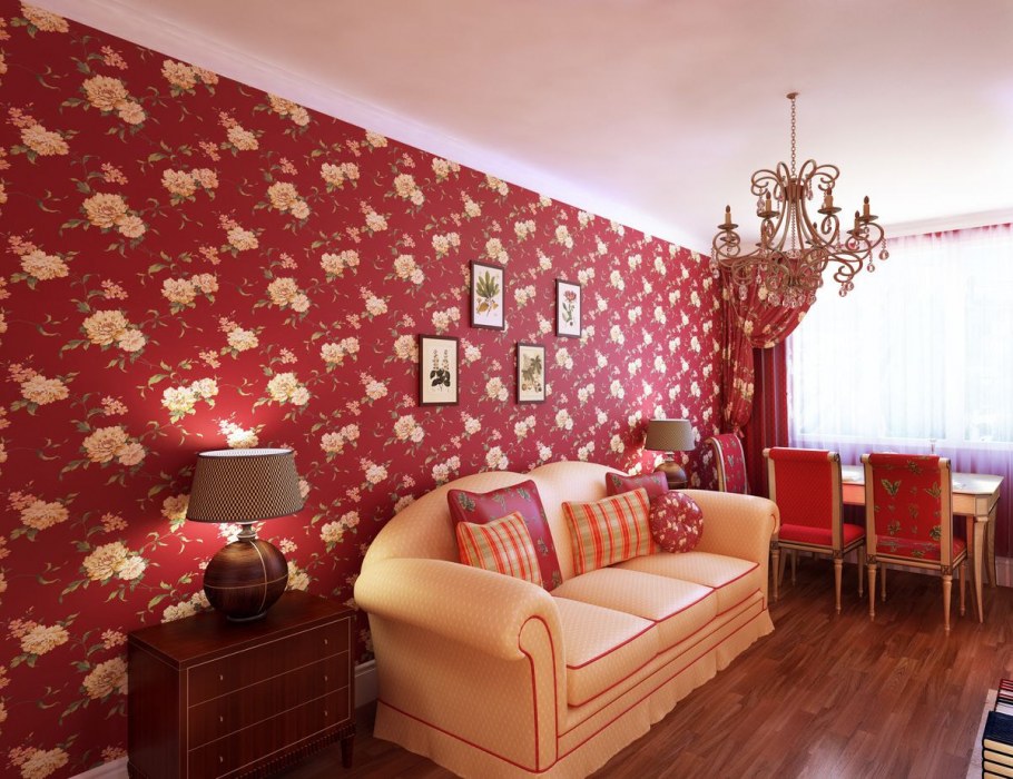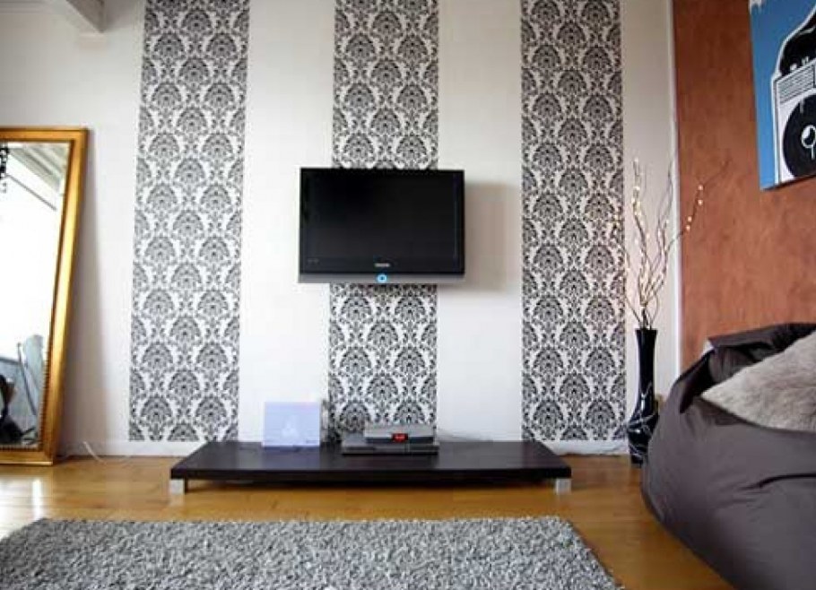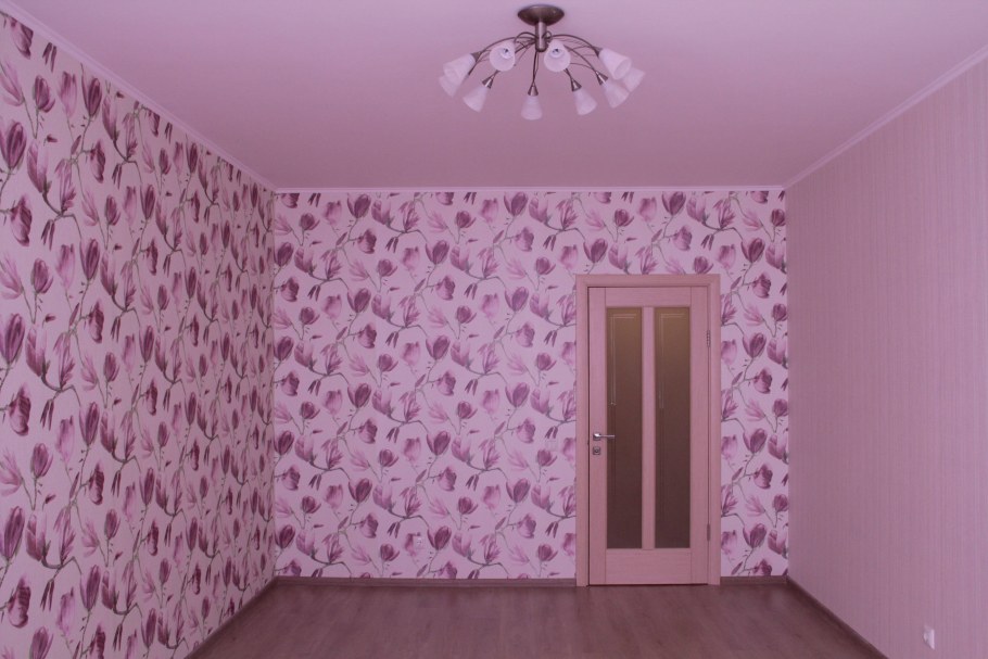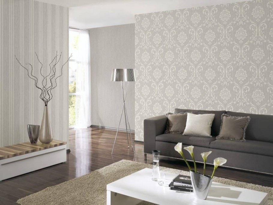 Гостиная с 2 окнами на одной стене с акцентной стеной за диваном