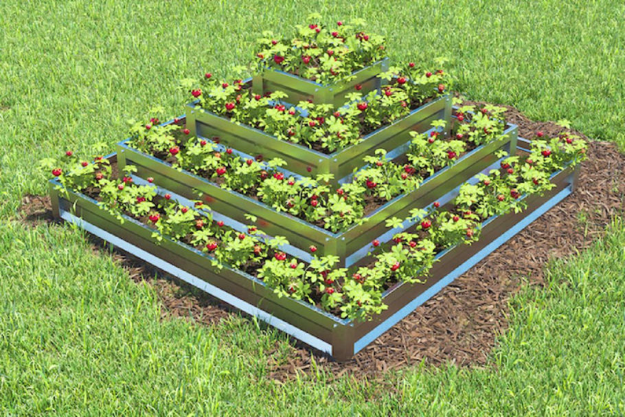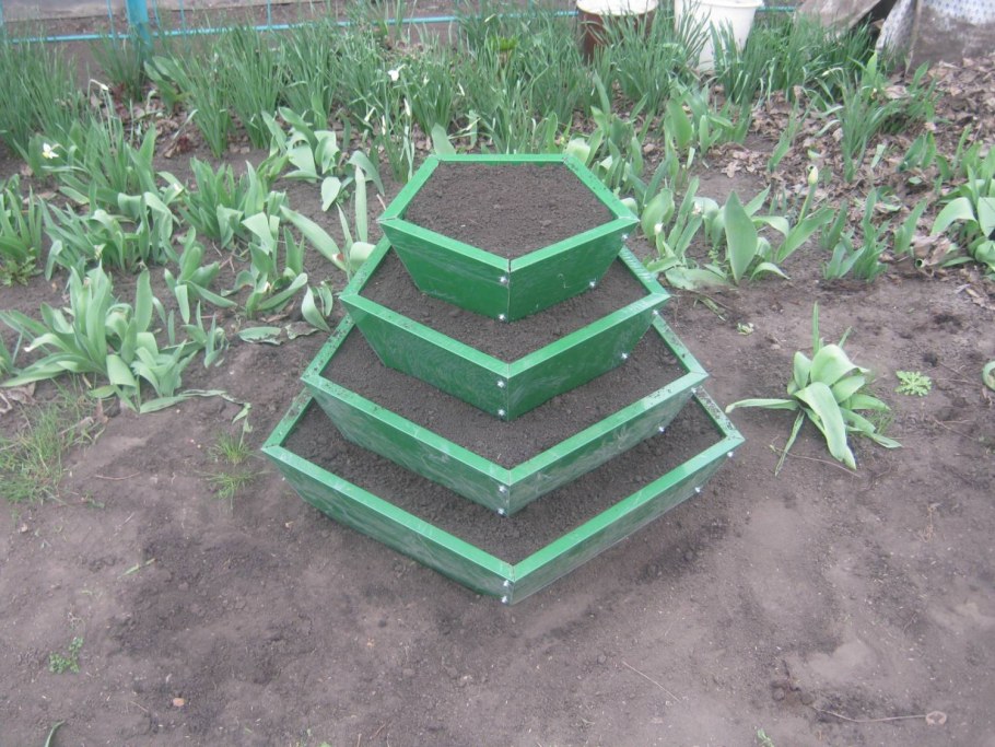 Четырехъярусная пирамида квадратная клумба оцинкованная