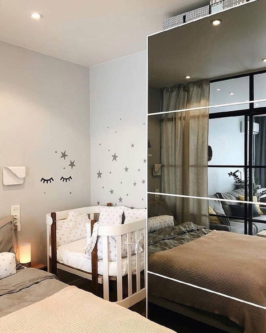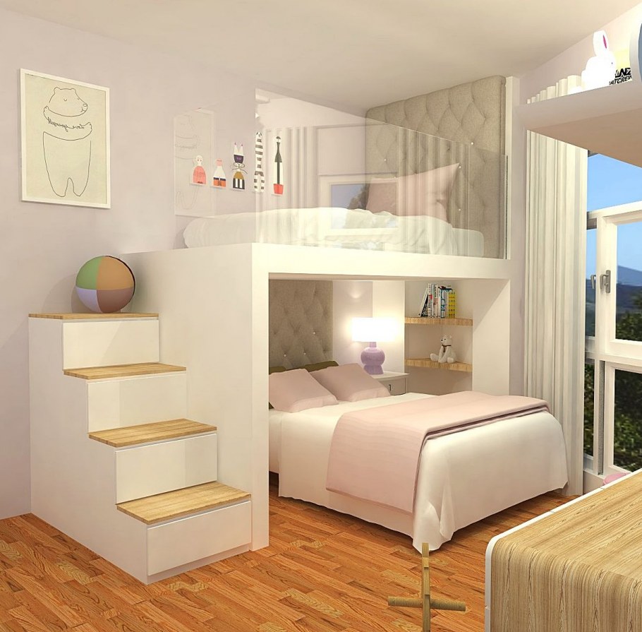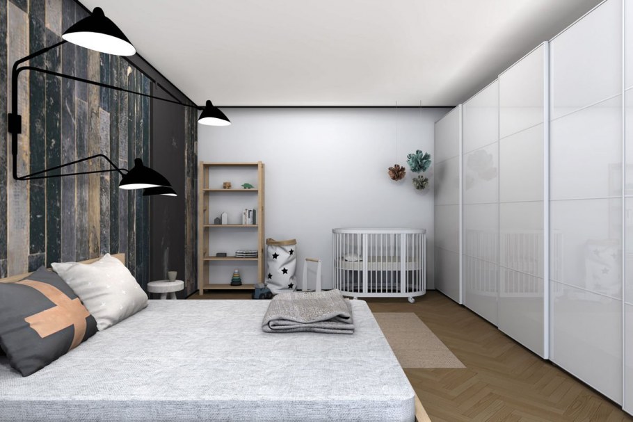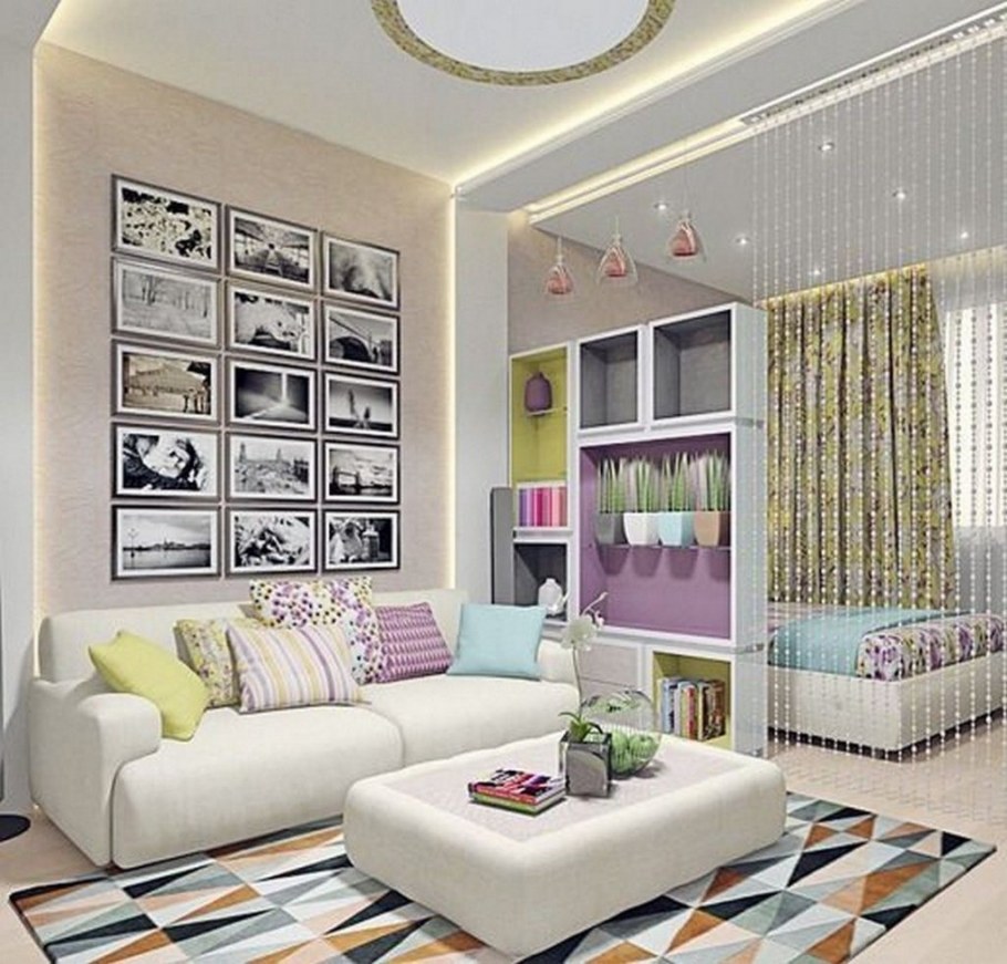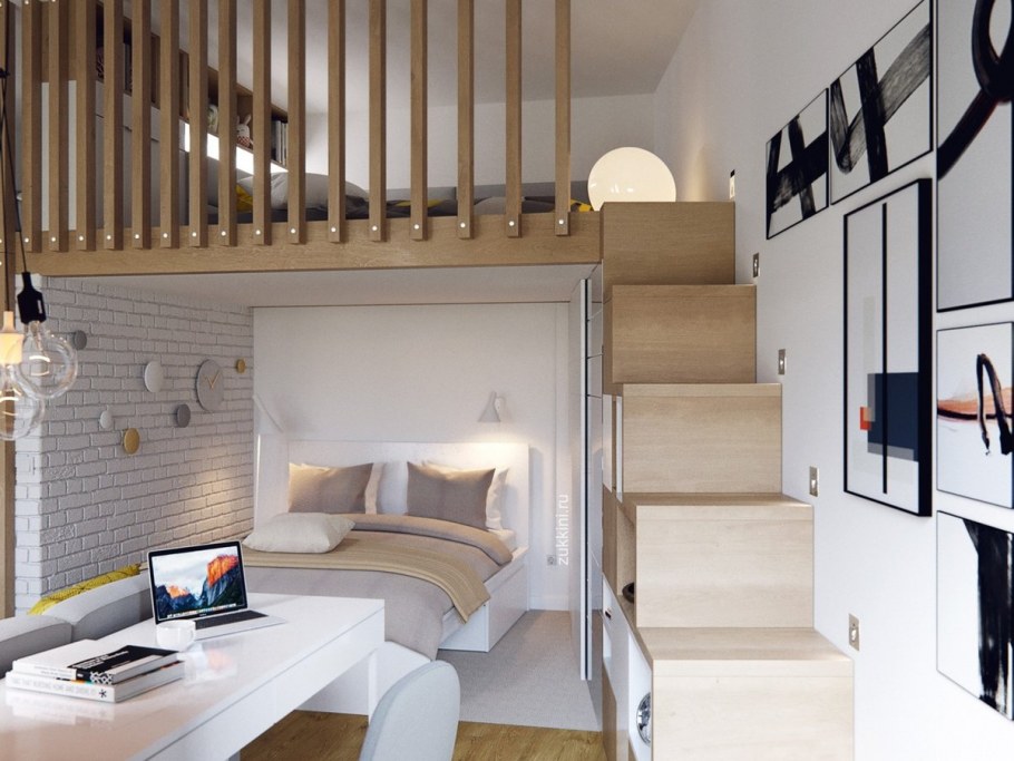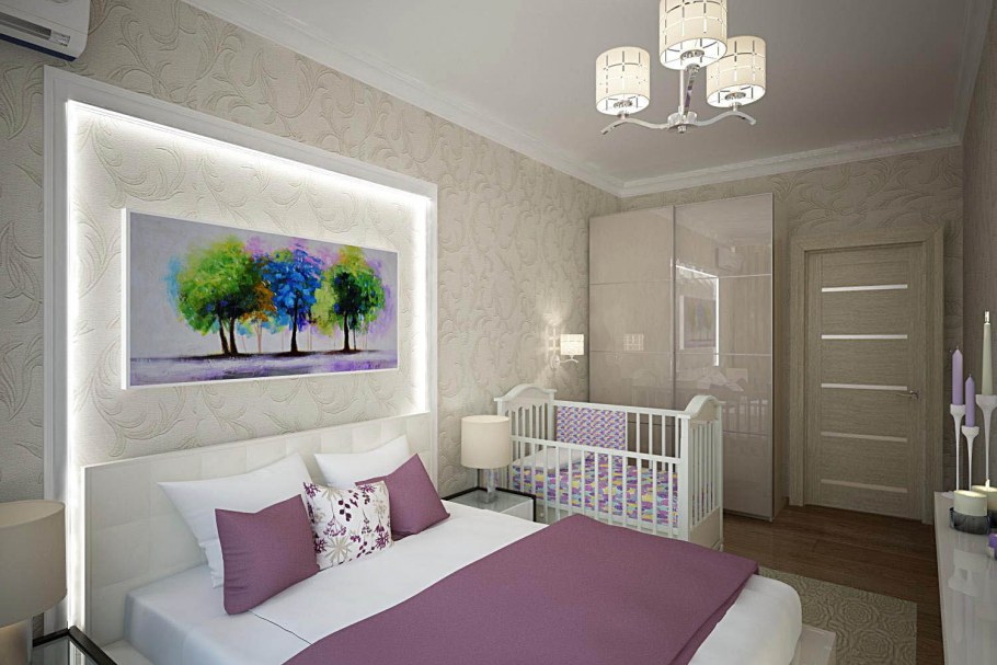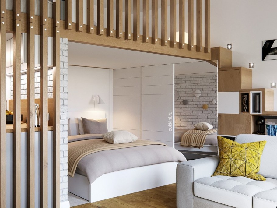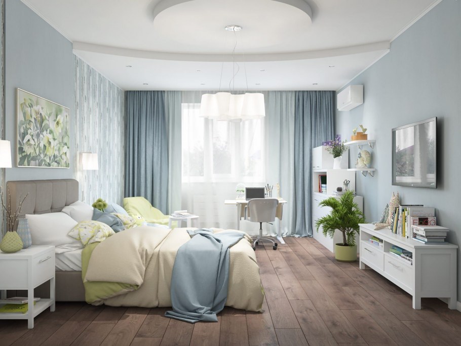 Зонирование комнаты с балконом для семьи с 2 детьми