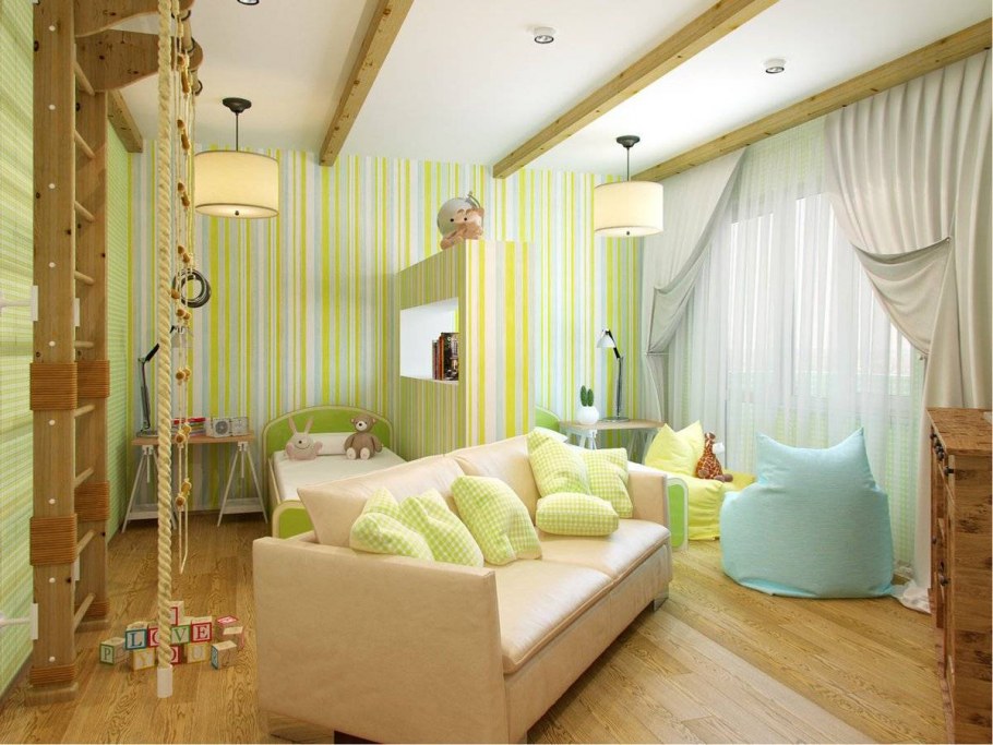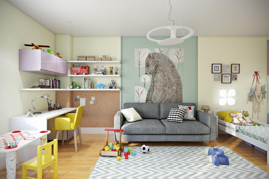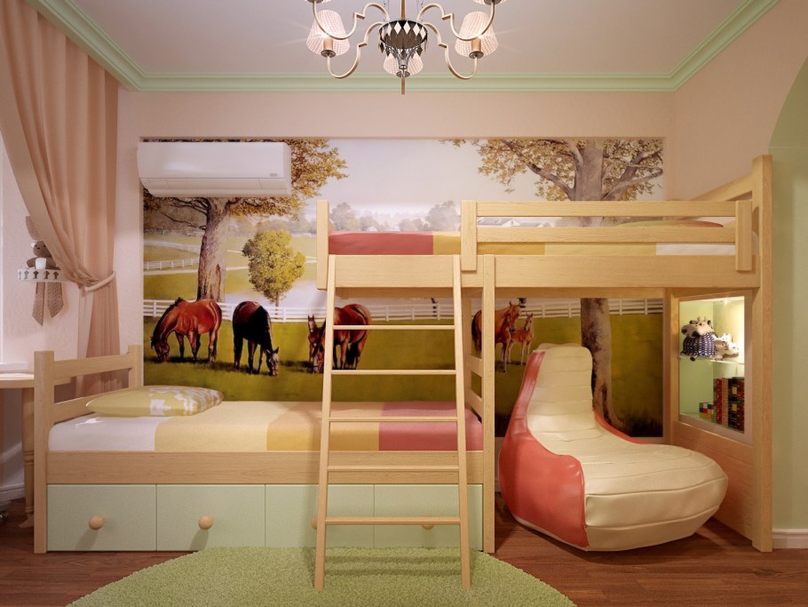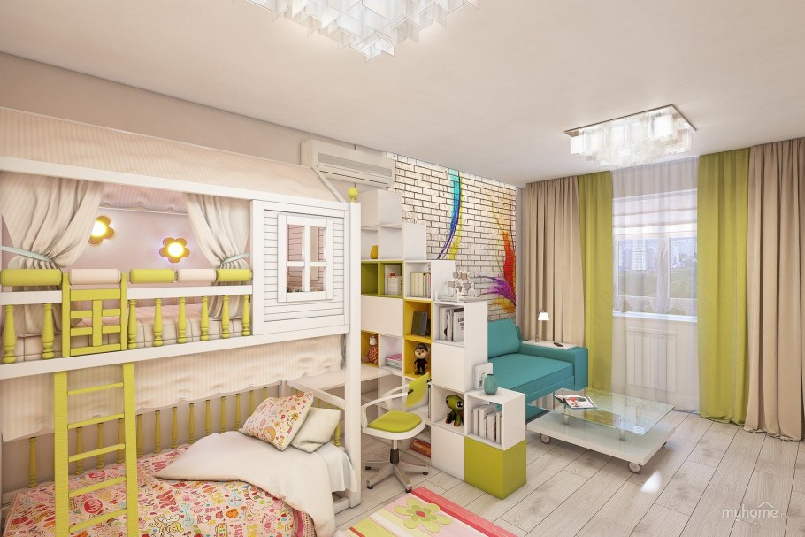Детская для двоих разнополых с двухъярусной кроватью 20 кв.м