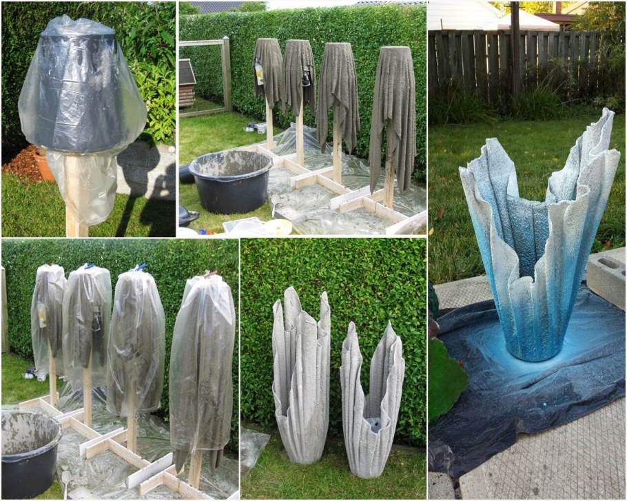 Вазоны из цемента и ткани