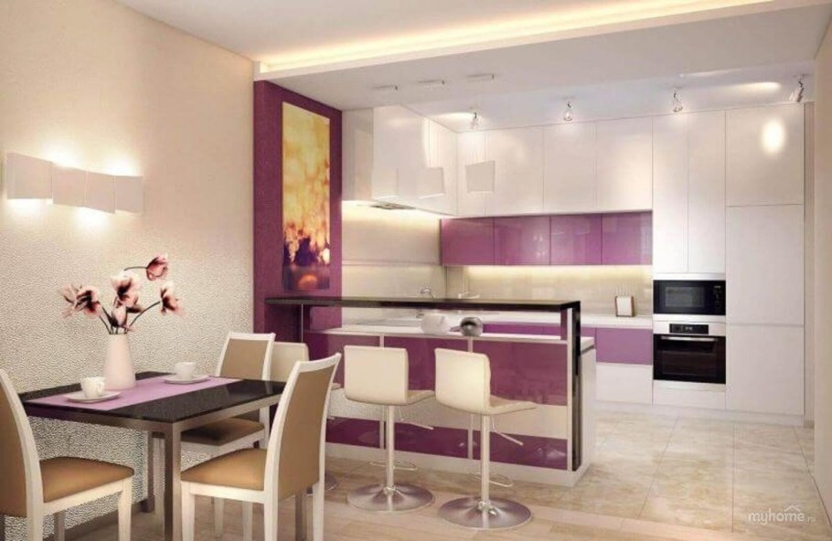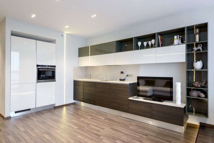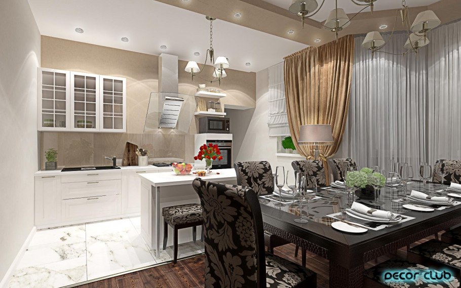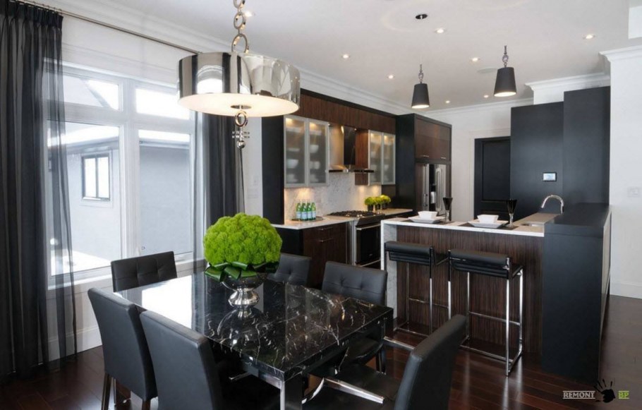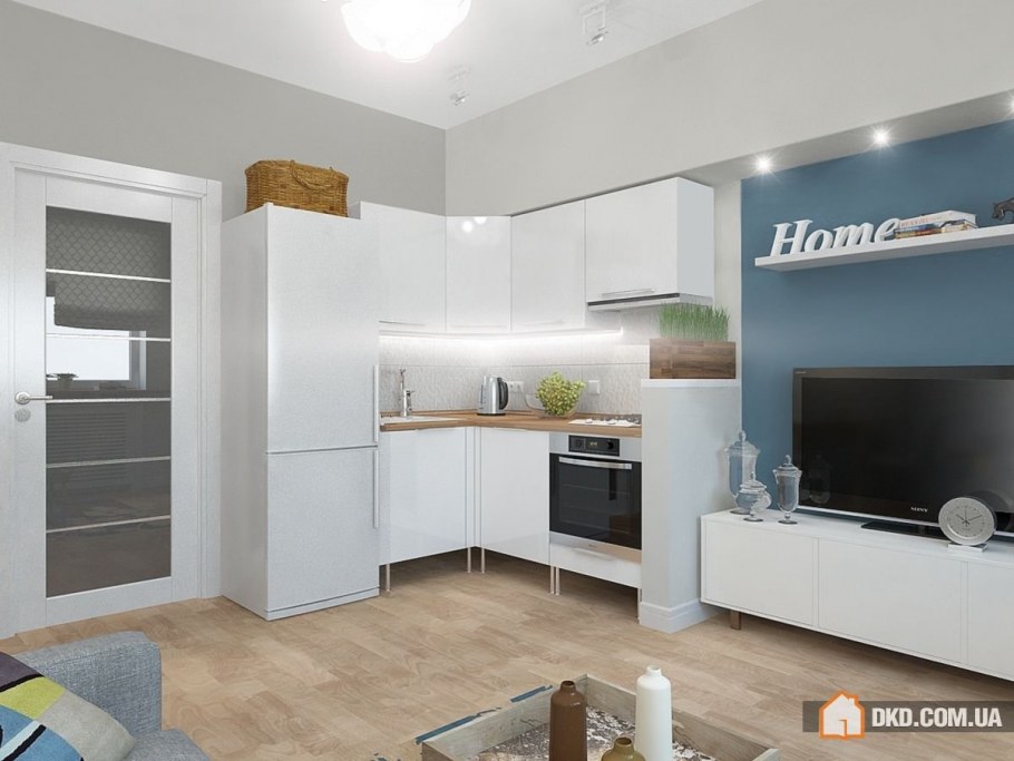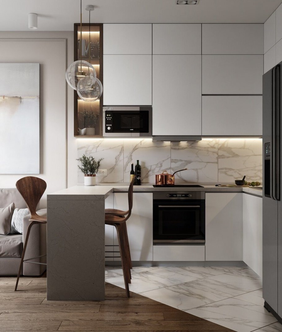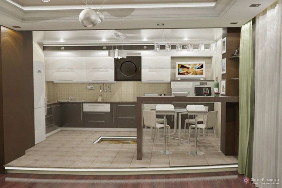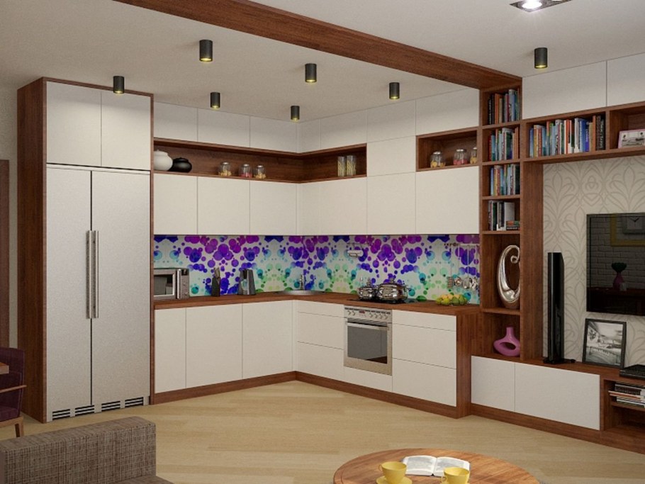 Гостиные с кухонным гарнитуром в интерьере (83 фото)