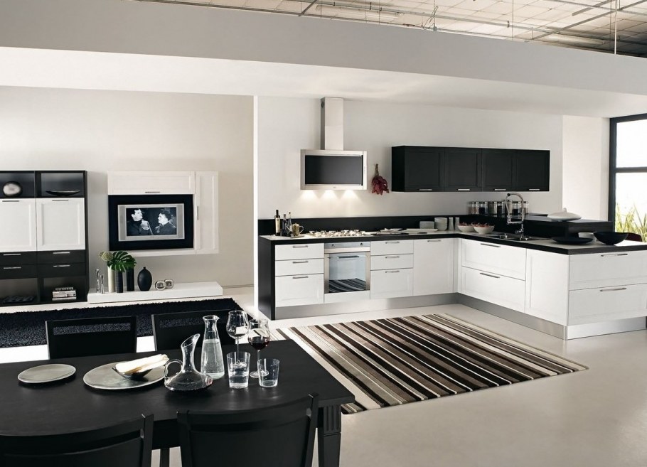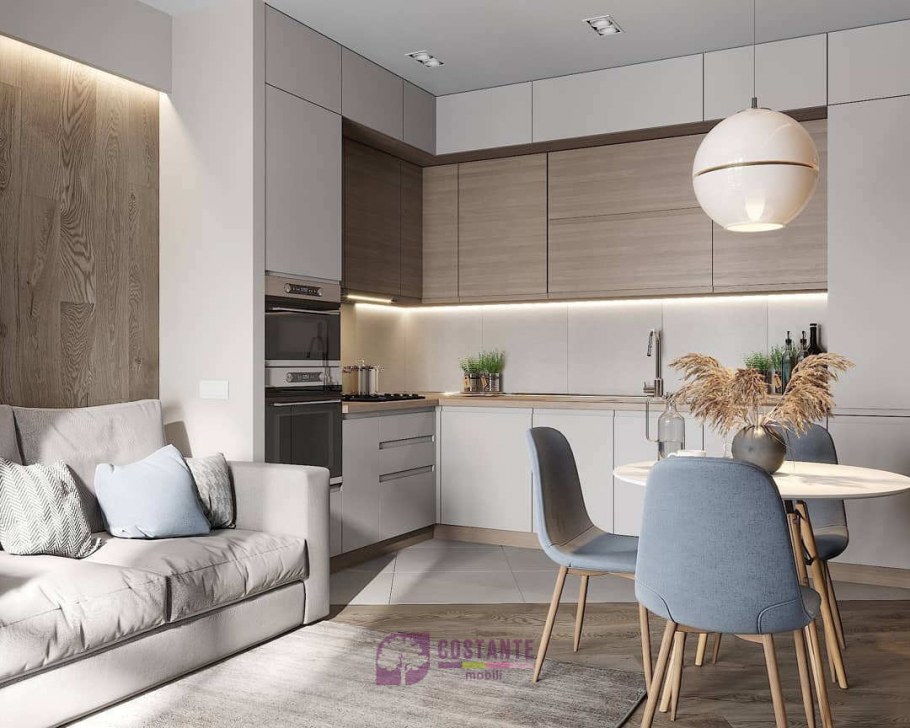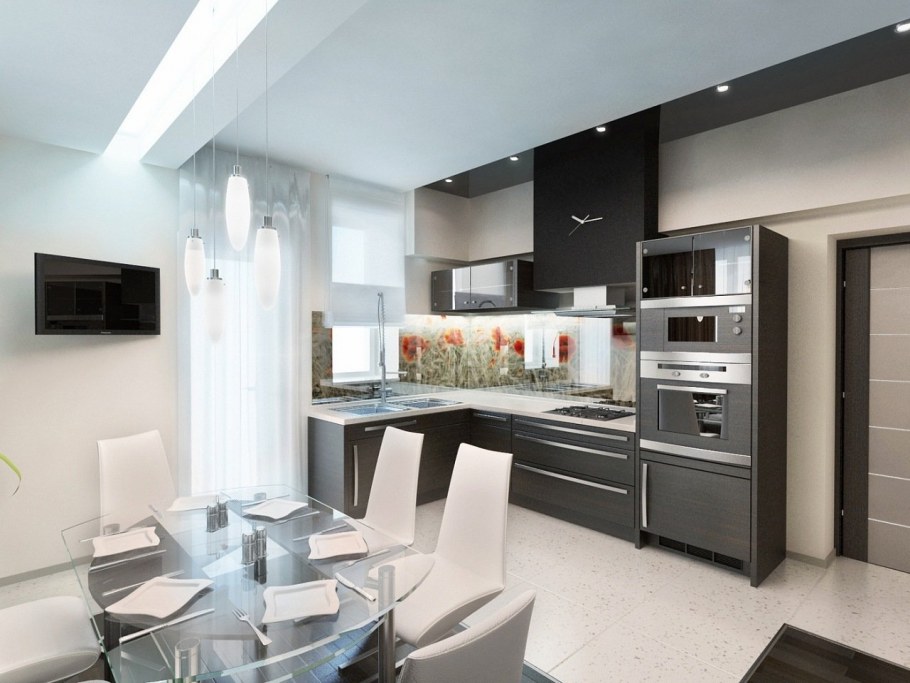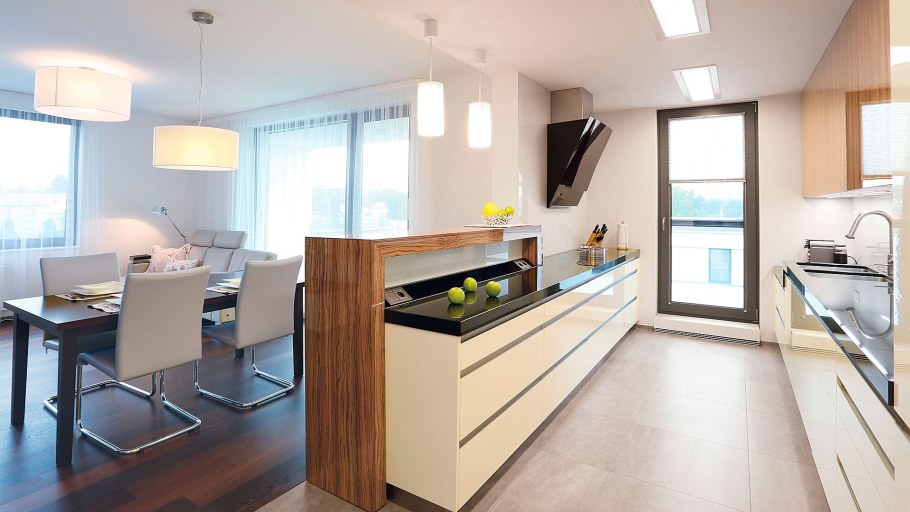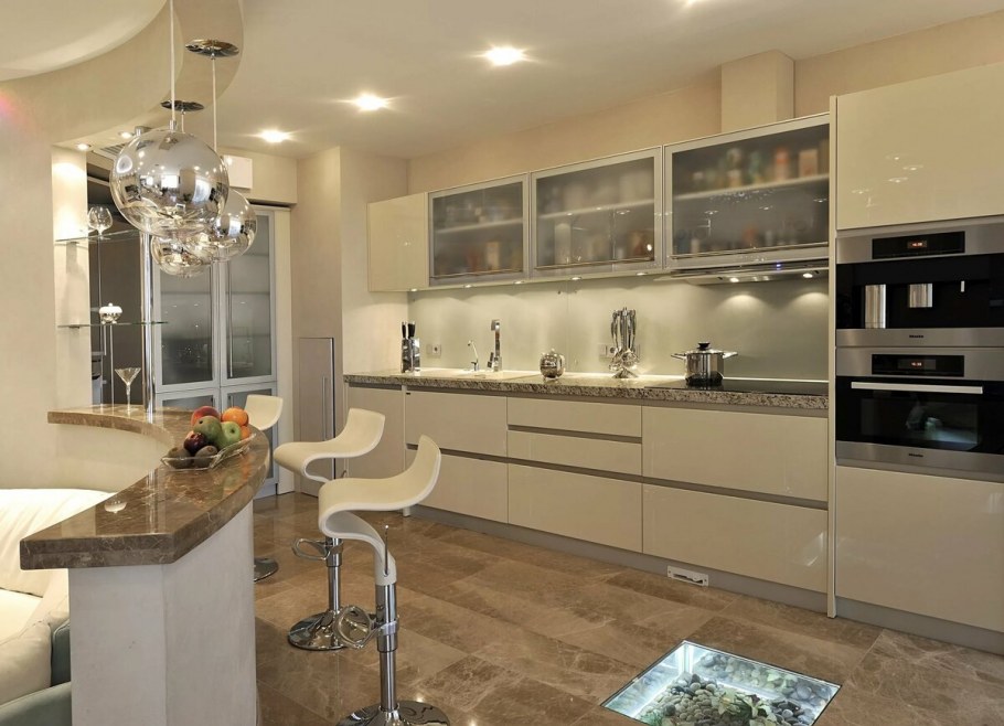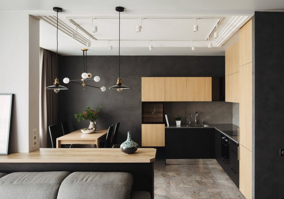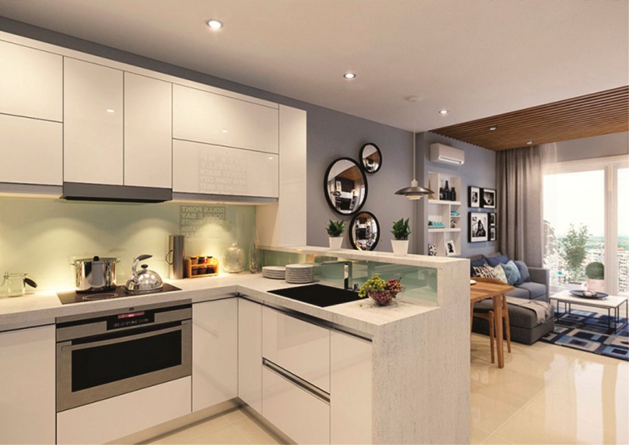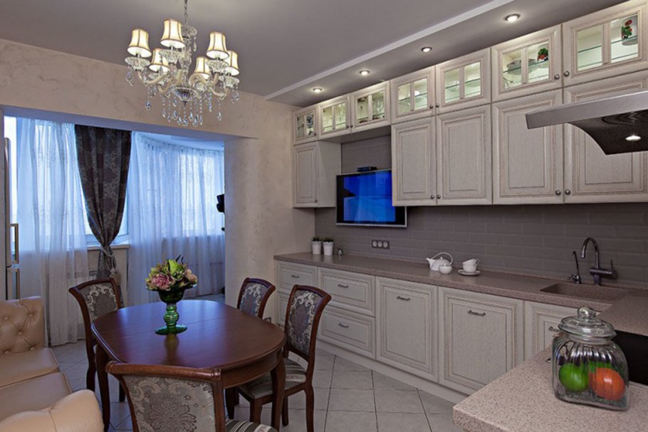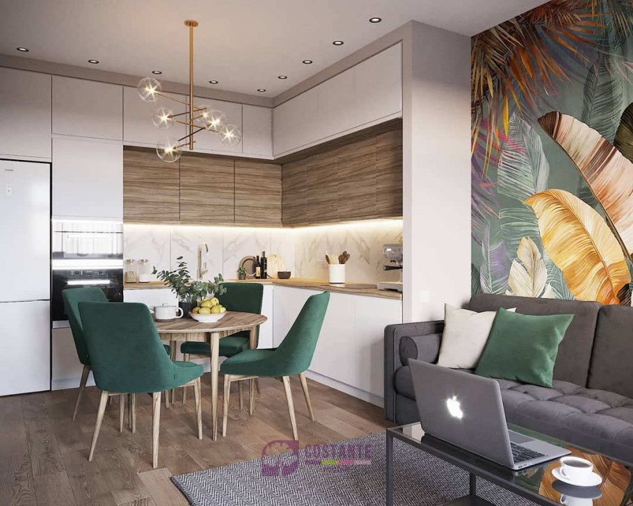 Гостиные с кухонным гарнитуром в интерьере (83 фото)