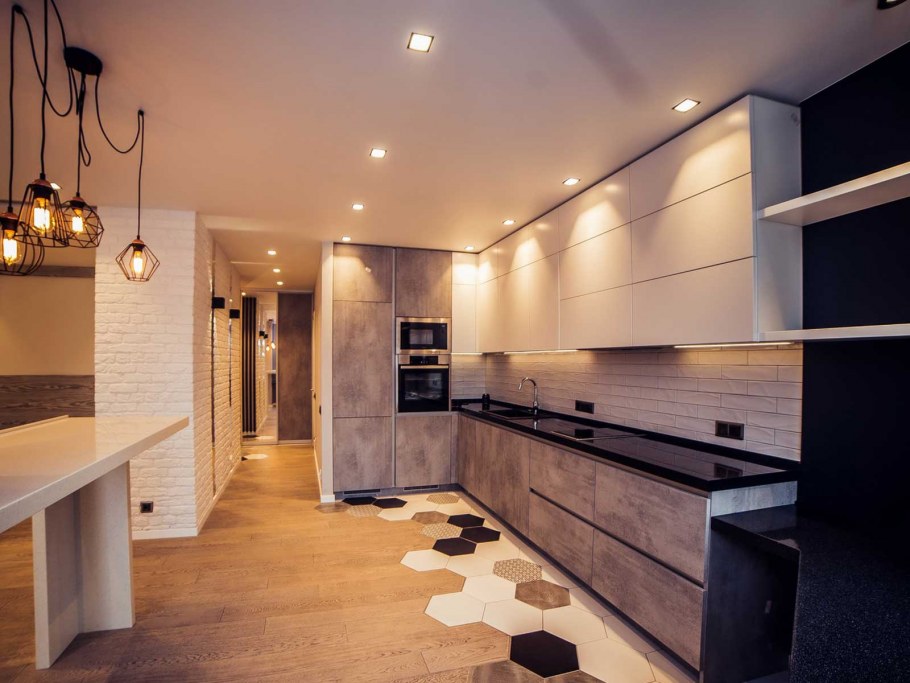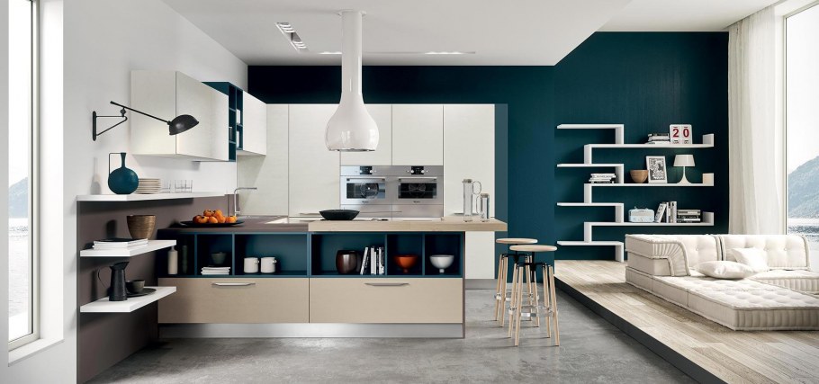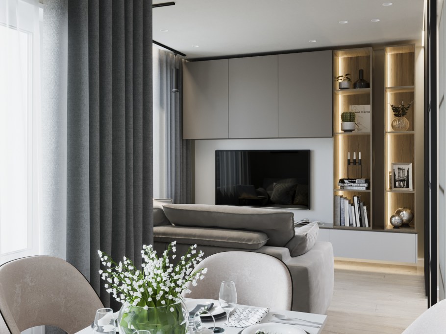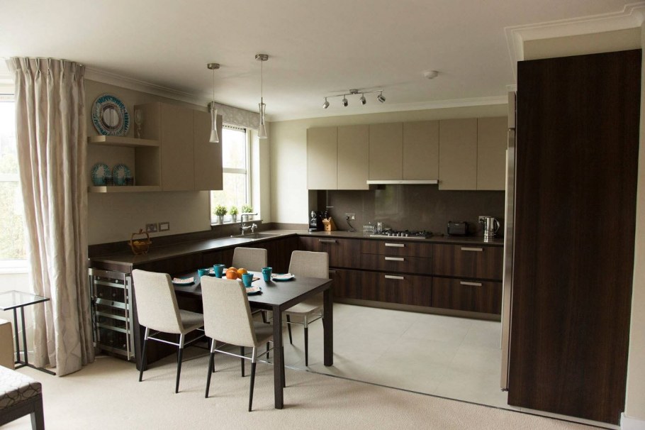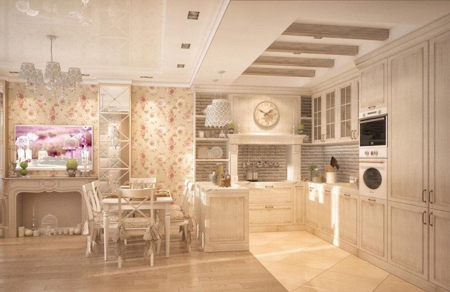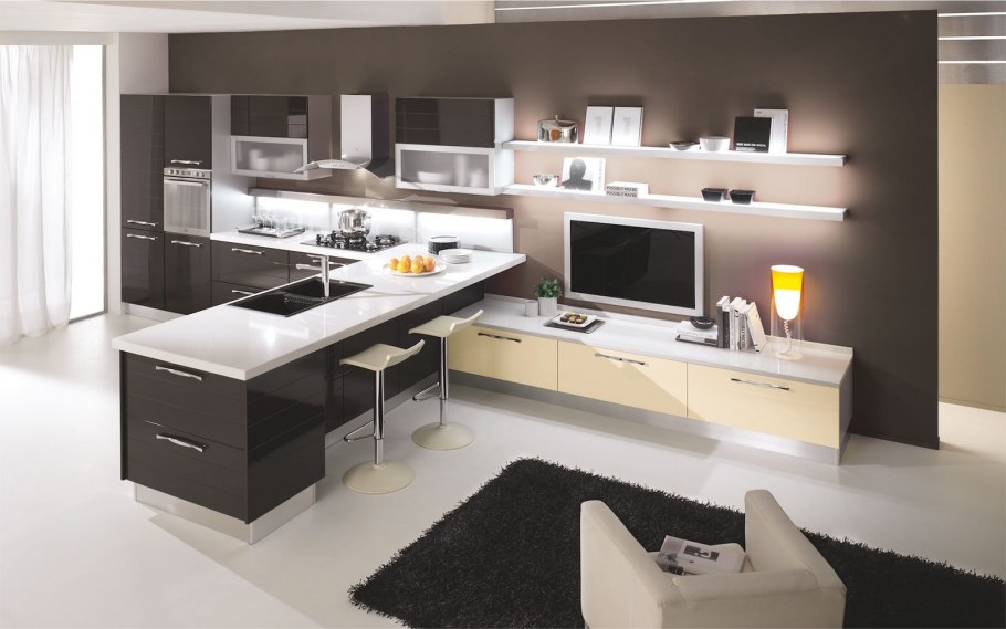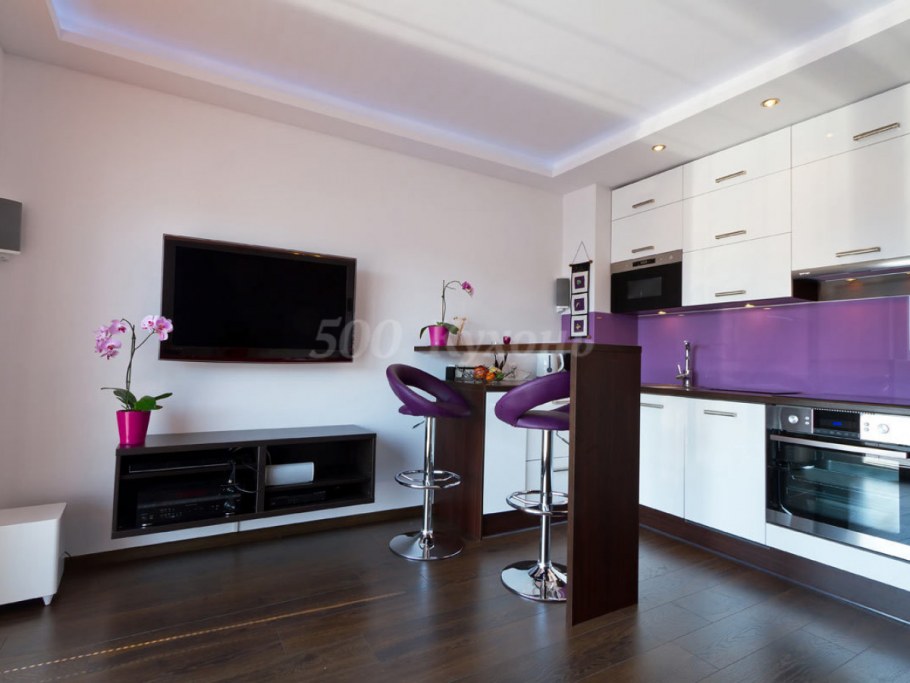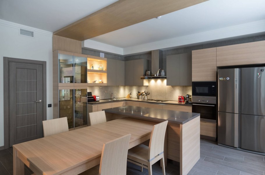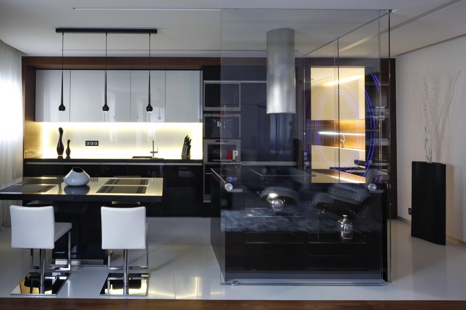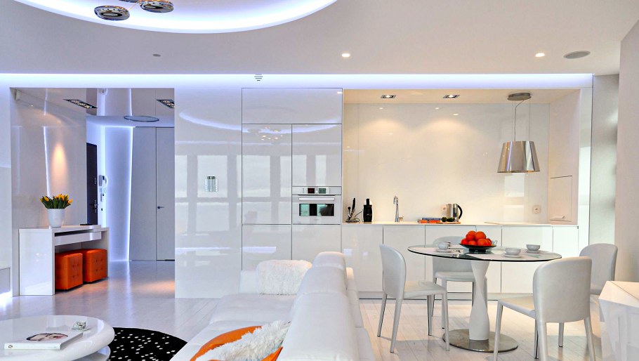 Гостиные с кухонным гарнитуром в интерьере (83 фото)