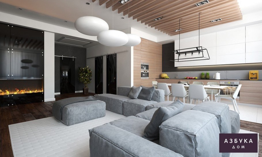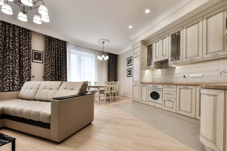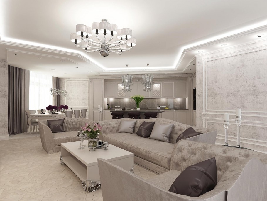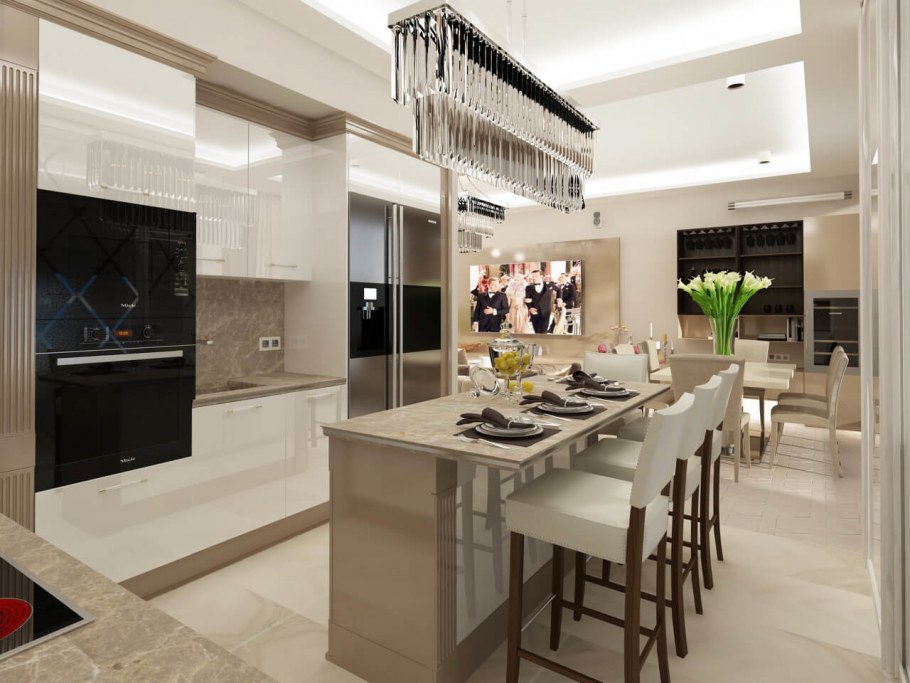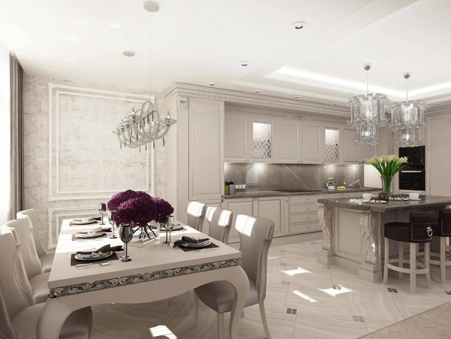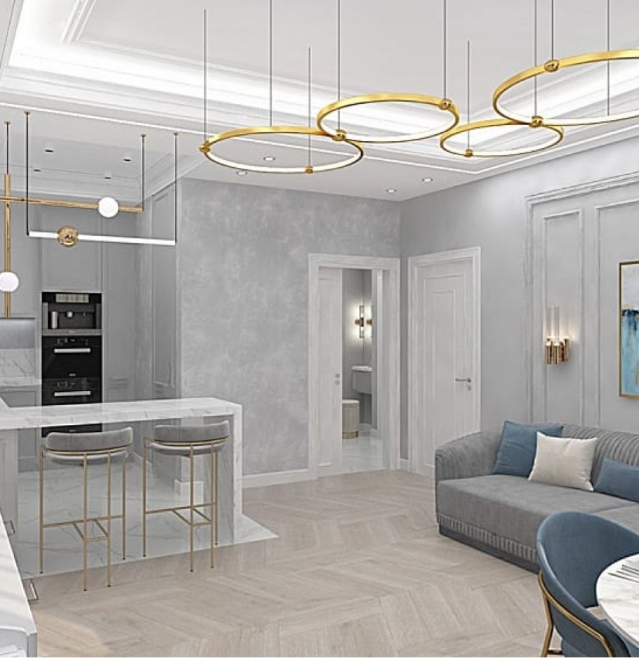 Кухня-гостиная 40 м2 в стиле Неоклассика