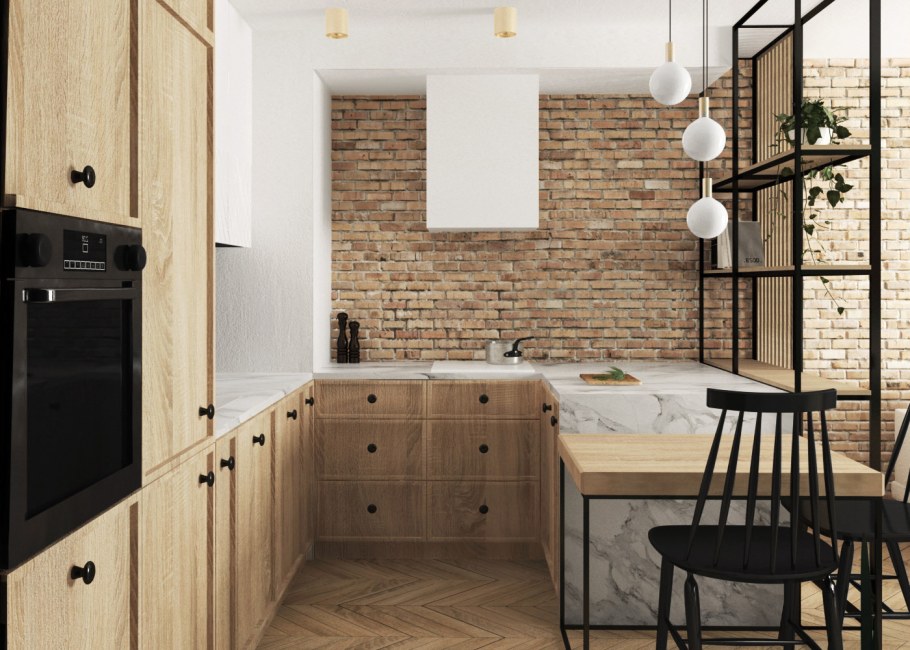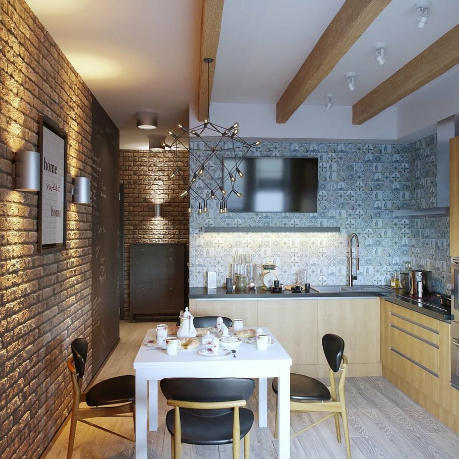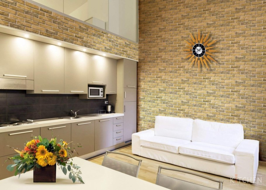 Отделка кухни кирпичиками