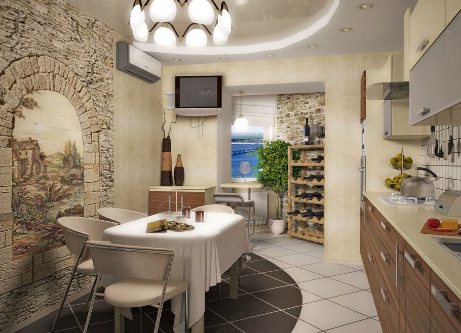 Интерьер кухни 11м2 с выходом на балкон